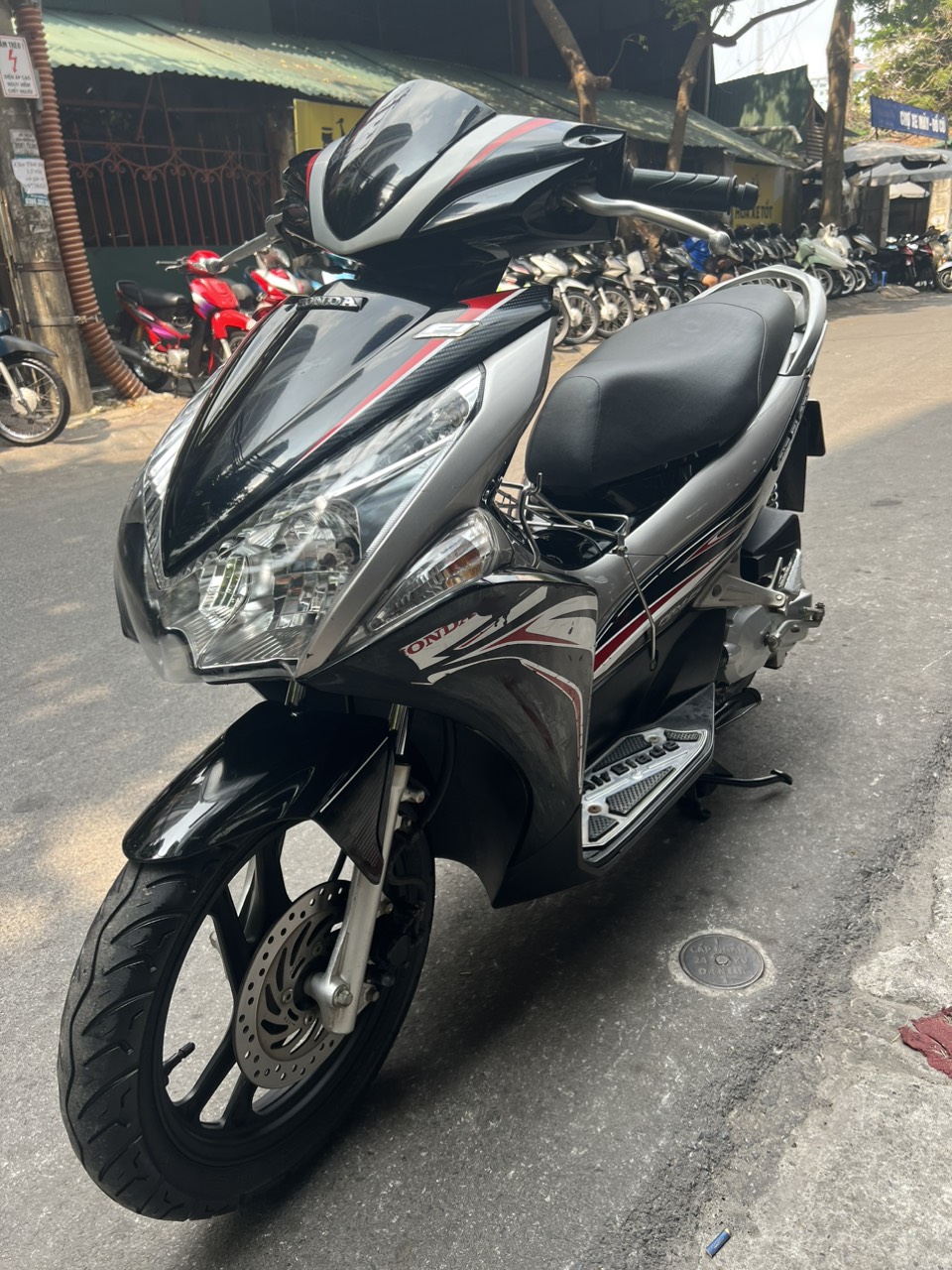 Honda Airblade, màu đen bạc, dung tích 110cc, xe đẹp đi rất ít. Hàng hiếm xe đẹp xuất sắc so với các xe cùng đời. Airblade là kiểu xe tay ga hiện đại rất được ưa chuộng, mạnh mẽ rất an toàn cho người sử dụng. Air Blade được đánh giá là một bước đột phá trong thiết kế hiện đại của dòng xe tay ga với các ưu điểm nổi trội về công nghệ tiên tiến. Xăng chạy 2,2L/100km.