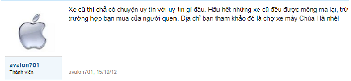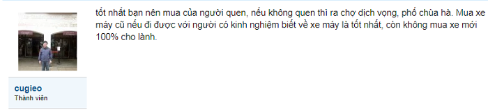 Để biết chợ xe máy cũ tại Hà Nội nào uy tín thì trước hết bạn nên tham gia một số diễn đàn và tham khảo ý kiến. Dưới đây là ý kiến của một số nickname trên diễn đàn tinhte.vn: