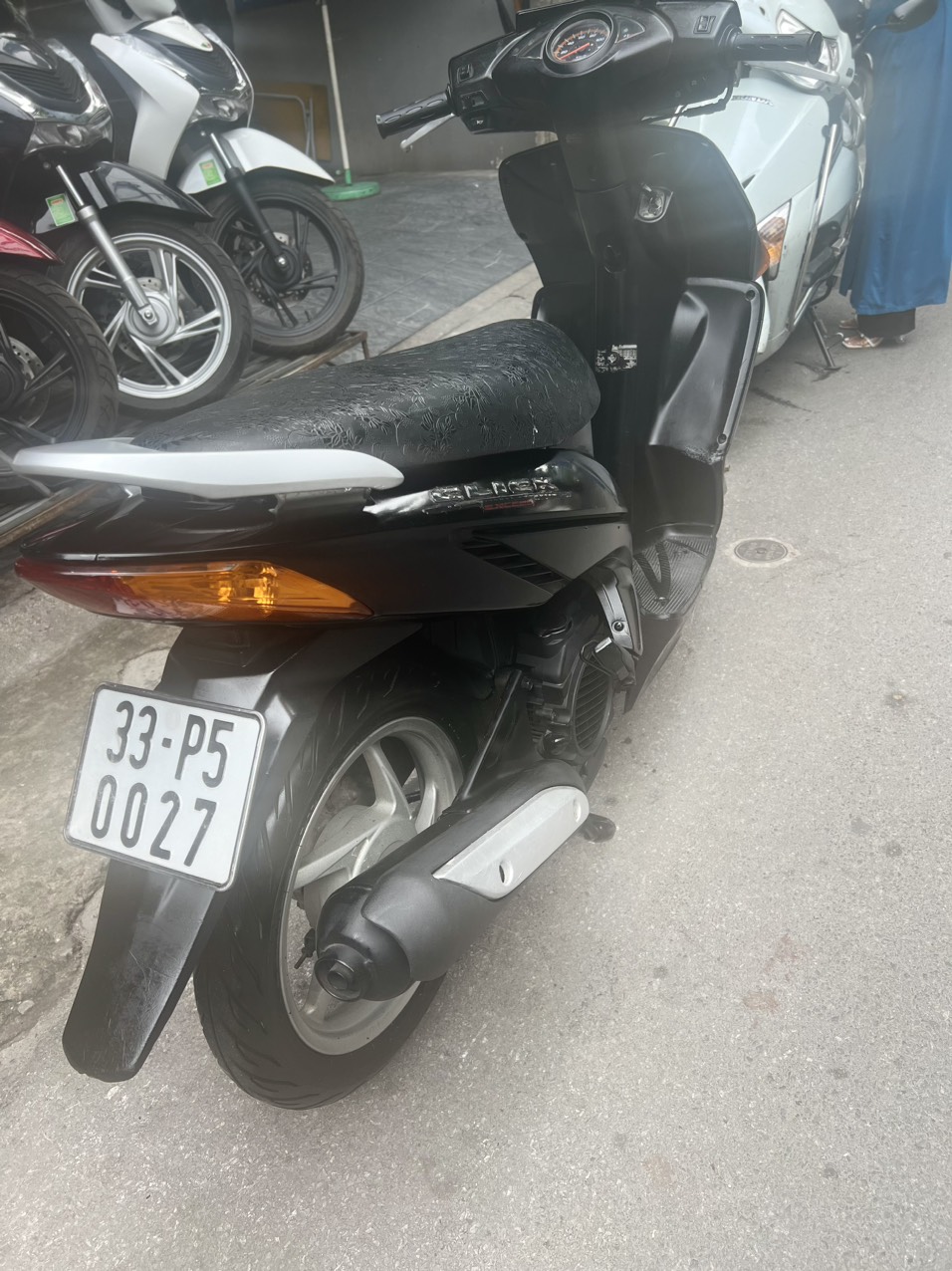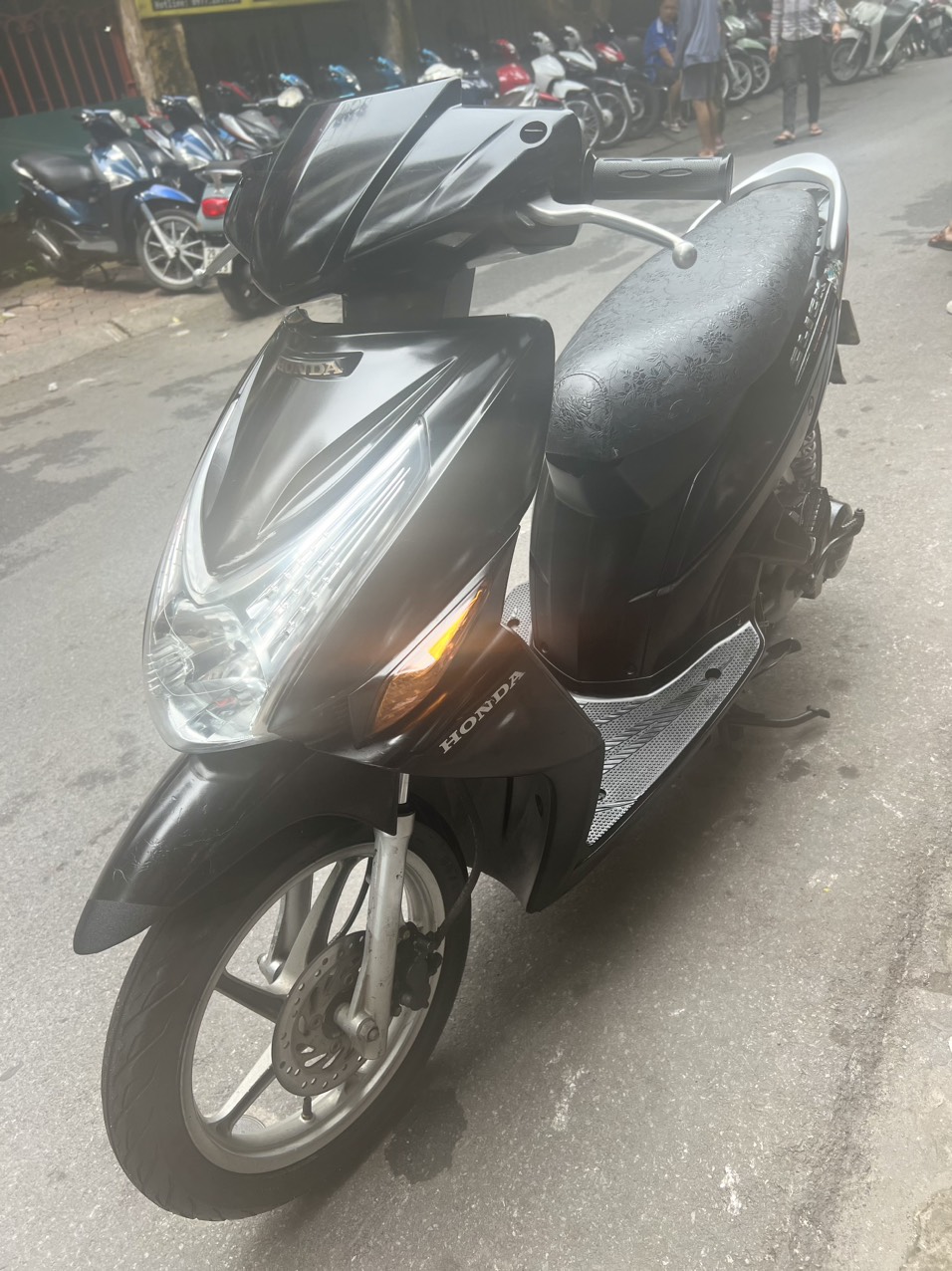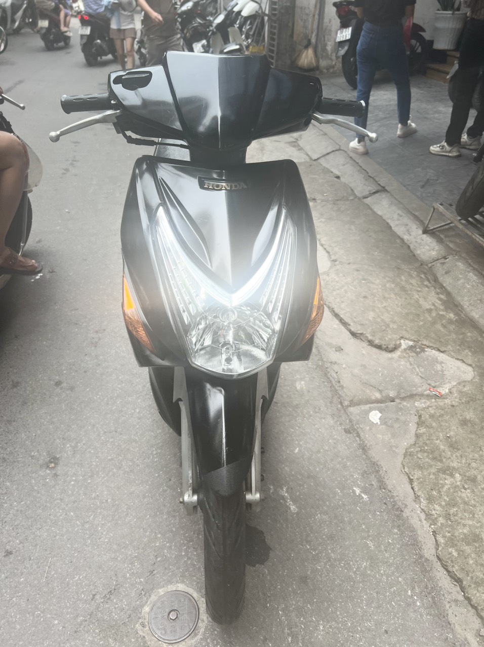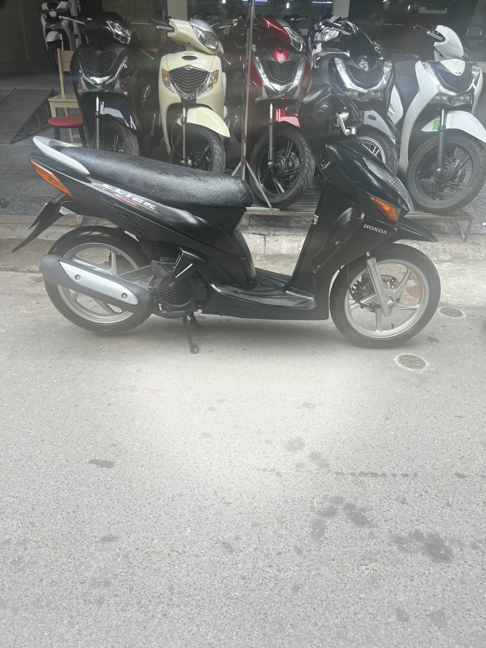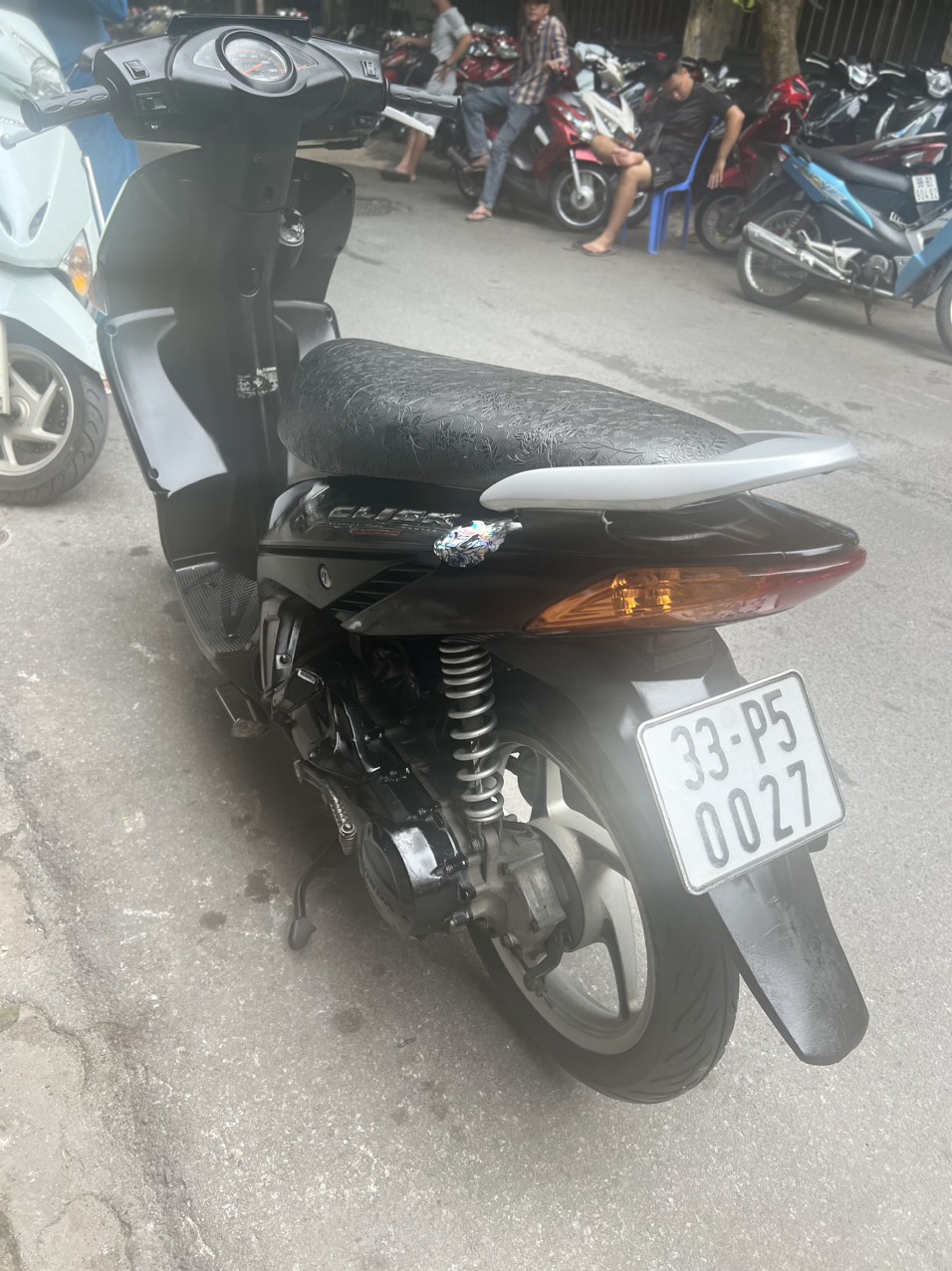 Honda Click, màu đen, dung tích 110cc. Đây là dòng xe ga có thiết kế nhỏ nhắn, nhẹ nhàng. Kiểu dáng trẻ trung, thanh lịch. Xe phù hợp với các bạn nữ có vóc dáng mi nhon, chiều cao vừa phải. Ưu điểm nổi bật của dòng xe này là máy khoẻ, chạy êm, di chuyển ổn định ở tốc độ cao.