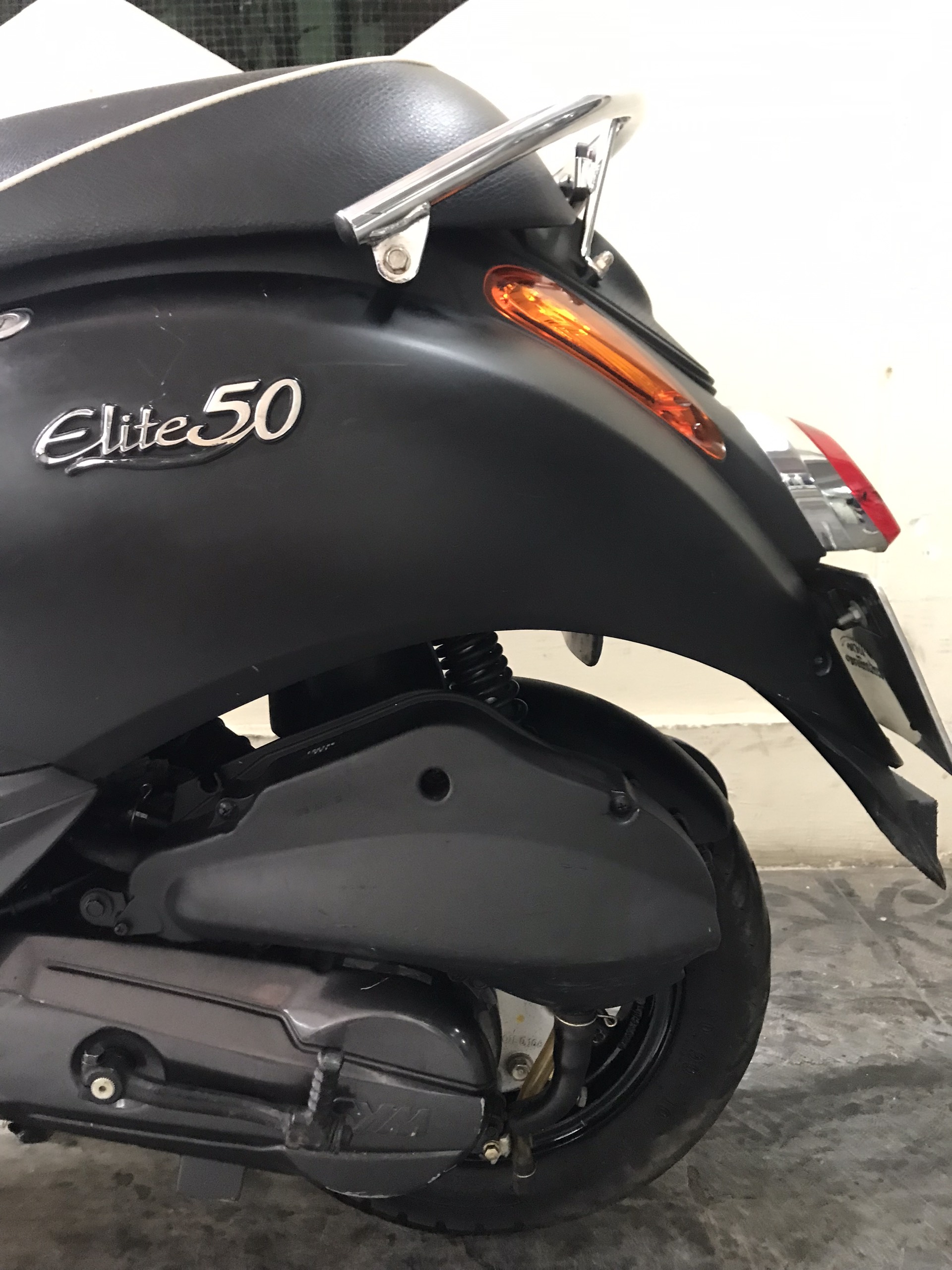 Với thân xe nhỏ gọn Elite 50 rất dễ nhận ra bởi kiểu dáng được thiết kế dựa trên những hình khối tròn kết hợp với những đường cong mềm mại tạo ra kiểu dáng rất con gái. Sàn để chân rộng và phẳng, yên xe rộng tạo cảm giác thoải mái cho người lái xe.