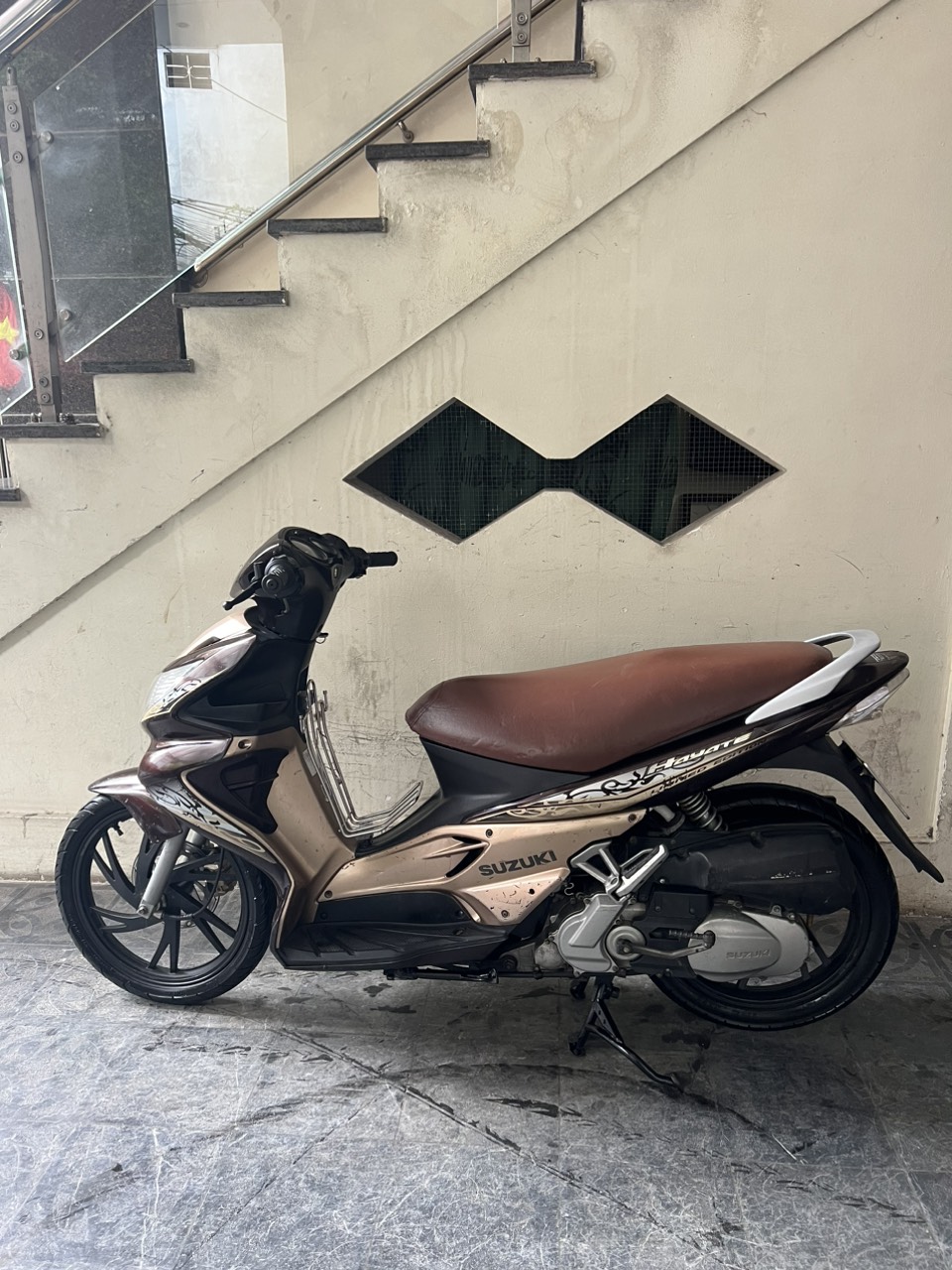 Suzuki Hayate, màu vàng đen, dung tích 125cc. Hàng hiếm đẹp xuất sắc so với các xe cùng đời. Đầu xe lấy cảm hứng từ Tàu Siêu Tốc (Bullet Train), đèn đuôi xe lấy cảm hứng từ siêu môtô GSX-R danh tiếng. Nổi bật hơn ở phiên bản mới, chiếc xe tay ga thể thao này khoác lên mình một dàn tem hoàn toàn mới cực kỳ bắt mắt. Xe có hình thức đẹp, máy khởi động nhẹ nhàng, vận hành êm ái, di chuyển ổn định ở tốc độ cao, xe nhìn đơn giản nhưng vẫn toát lên vẻ sang trọng.