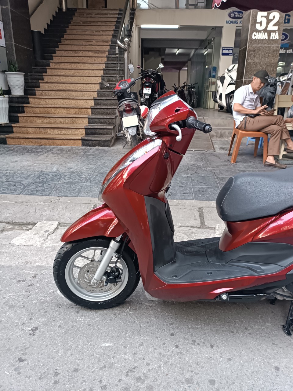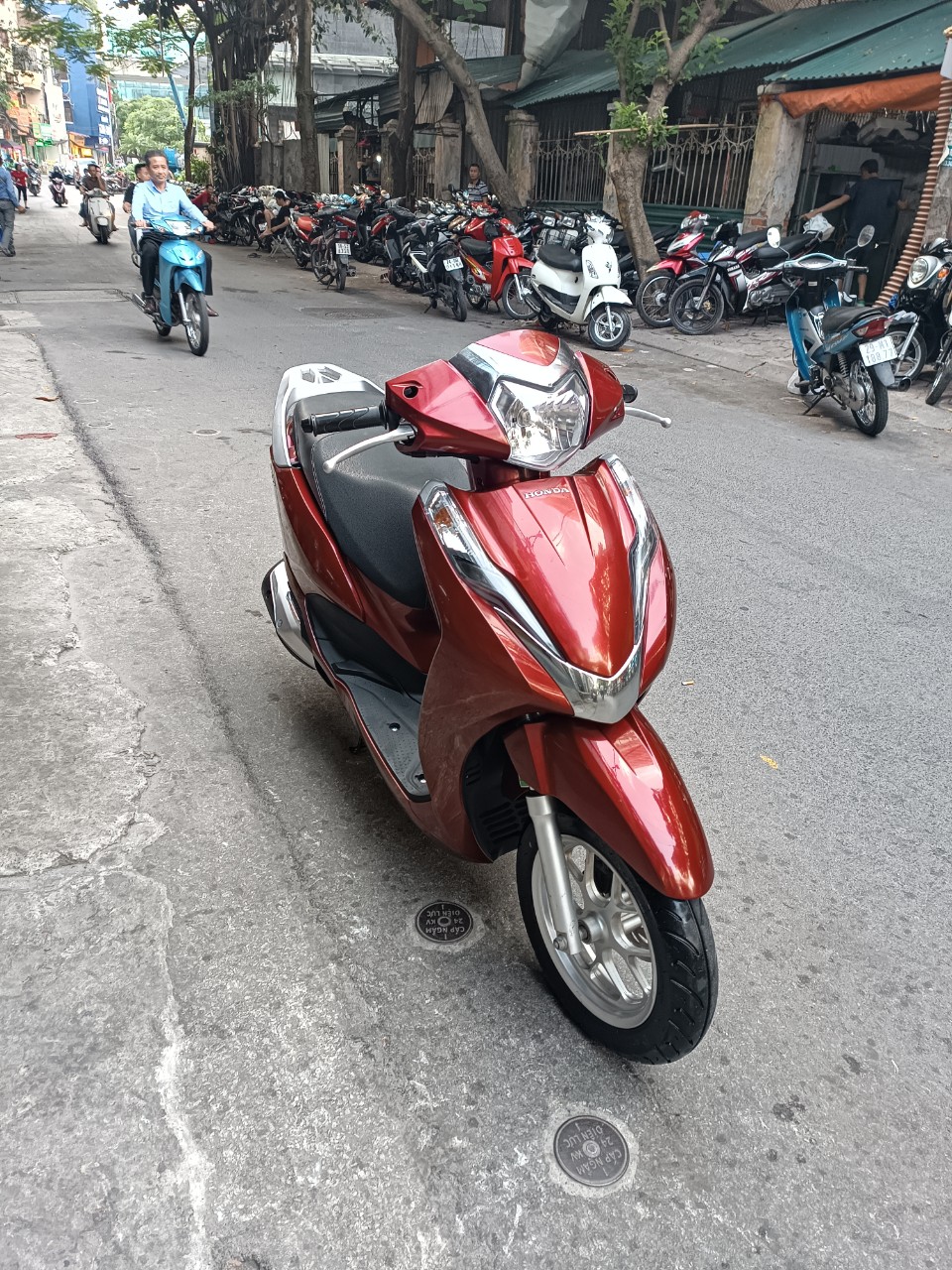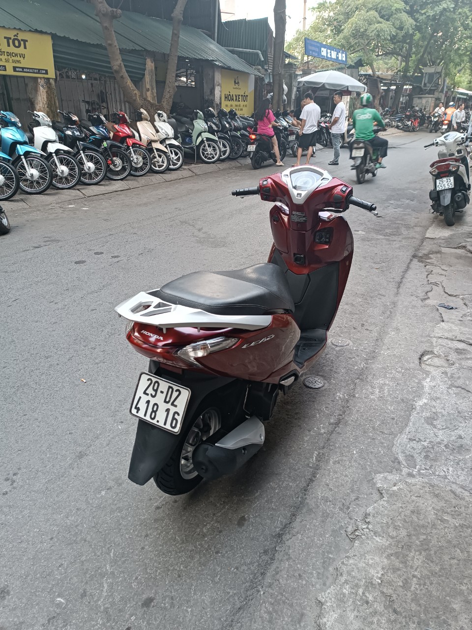 Honda Lead, màu đỏ đen, dung tích 125cc. Lead là một trong những dòng xe đa dụng, phù hợp với thị hiếu của nhiều người tiêu dùng. Xe được thiết kế đặc biệt tiện dụng dành cho các bạn nữ. Với cốp rộng để nhiều vật dụng tiện lợi. Xe đi bốc, chạy khoẻ, máy êm, tiết kiệm nhiên liệu. Xăng chạy khoảng 1.8L/100Km.