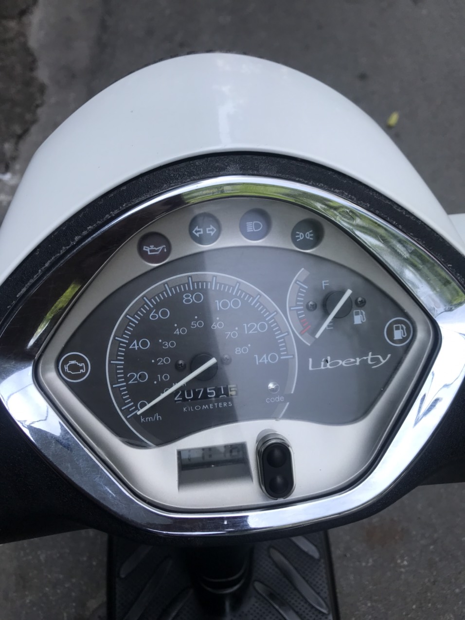 Piaggio Liberty ie, màu trắng, dung tích 125cc, máy khỏe đi êm ái, xe đẹp long lanh. Được đánh giá là một trong những dòng xe sang chảnh, phong cách, cá tính, lịch lãm. Liberty từ lâu đã chiếm được tình cảm mến mộ của một số lượng lớn người tiêu dùng hiện đại, bởi thiết kế tinh tế, khoẻ khoắn và sang trọng. Xe đi vững chắc, êm ái. Xe đi vững chắc, êm ái, di chuyển ổn định ở tốc độ cao. Nhiêu liệu tiêu thụ khoảng 2,8L/100Km.