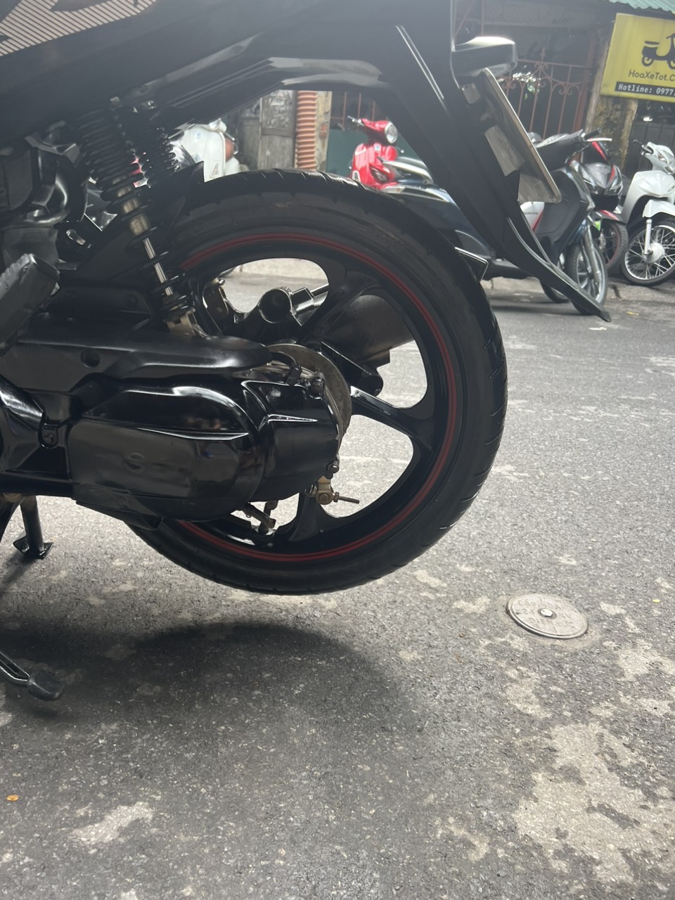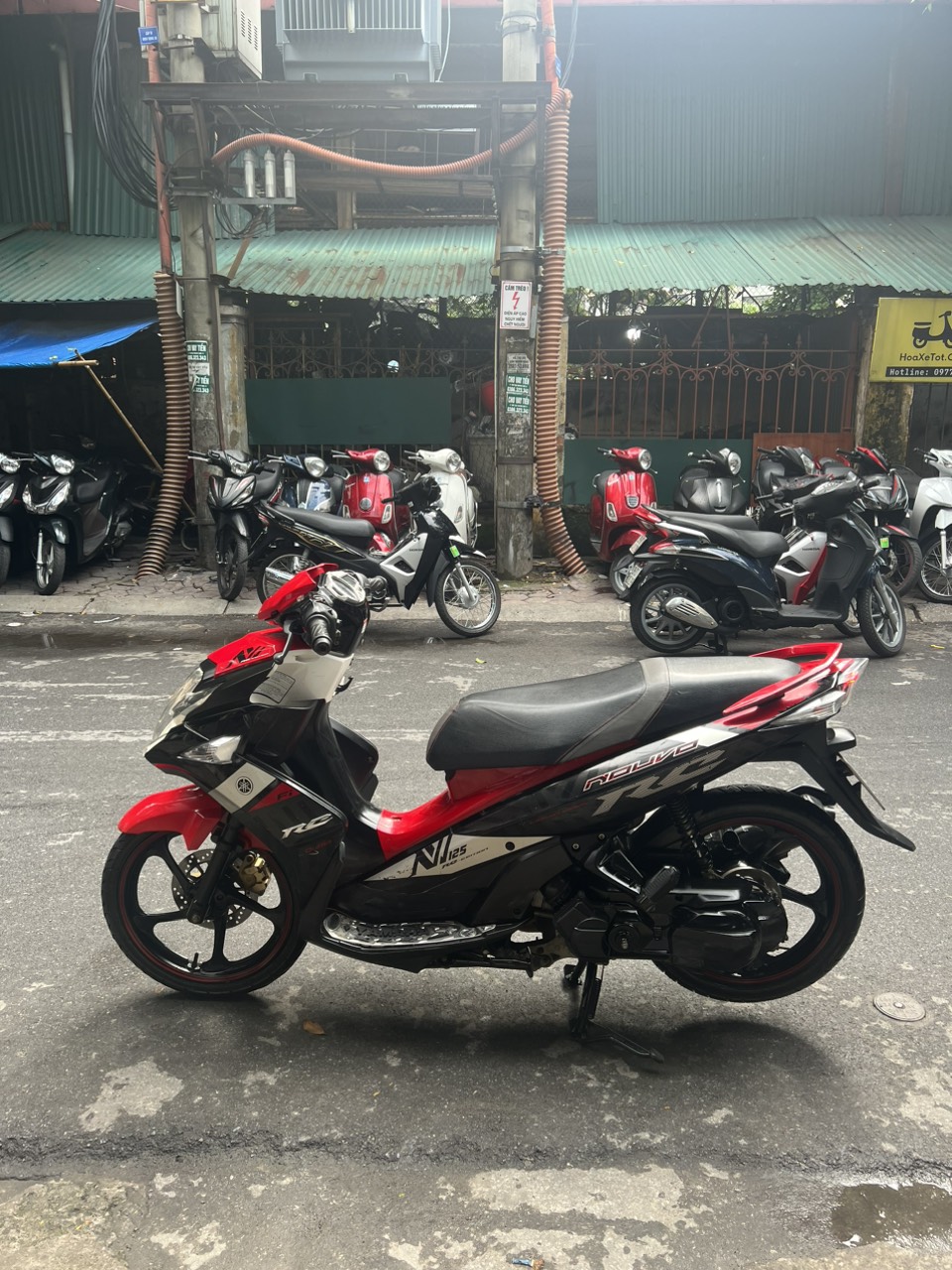 Yamaha Nouvo 6 Fi, màu đen đỏ, dung tích 125cc. Được đánh giá là một trong những dòng xe được ưa thích của Yamaha. Nouvo sở hữu một thiết kế tính tế, kiểu dáng thời trang, lịch lãm. Ngoài ra, nó còn chinh phục khách hàng bởi khả năng vận hành vượt trội, kiểu dáng thể thao phù hợp với giới trẻ, đặc biệt phù hợp với những người đam mê tốc độ, muốn khẳng định bản thân. Xe hình thức đẹp, máy khoẻ, chạy bốc, di chuyển ổn định ở tốc độ cao. Xe có chế độ FI tiết kiệm nhiên liệu.