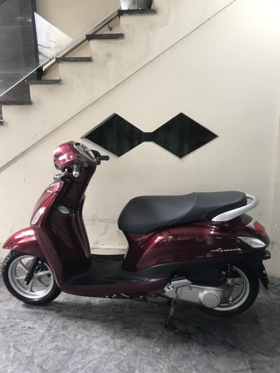 Yamaha Nozza Grande, màu đỏ đen, dung tích 125cc. Yamaha Nozza Grande là mẫu xe tay ga dành cho nữ giới của Yamaha thiết kế mềm mại, trọng lượng nhẹ, tăng tốc đều. Với mức giá bán nằm trong khoảng 30 triệu các bạn nữ có thể tự tin sắm cho mình chiếc xe Nozza Grande.