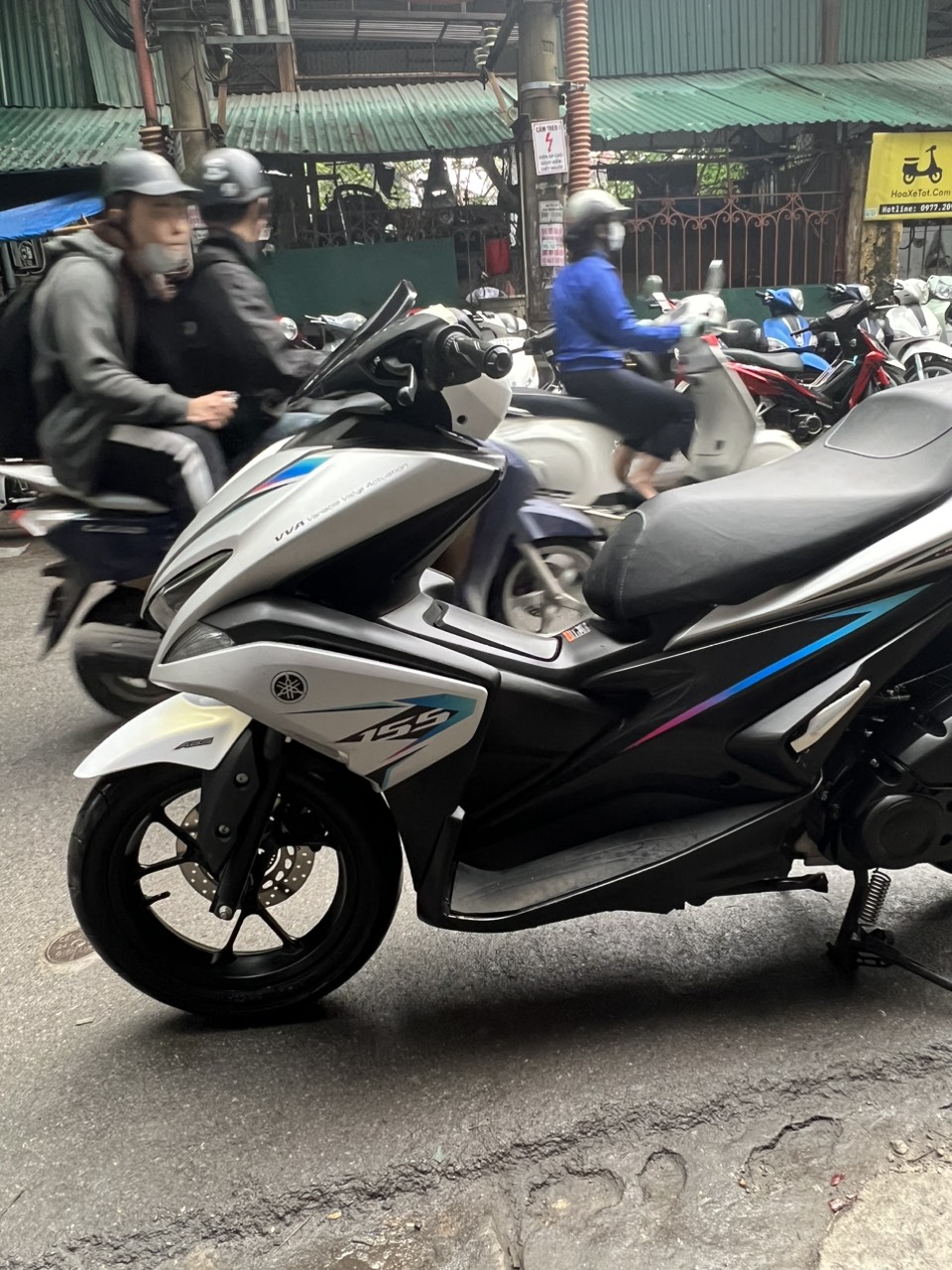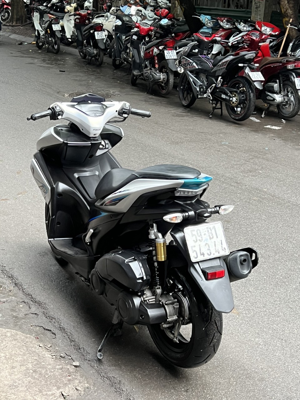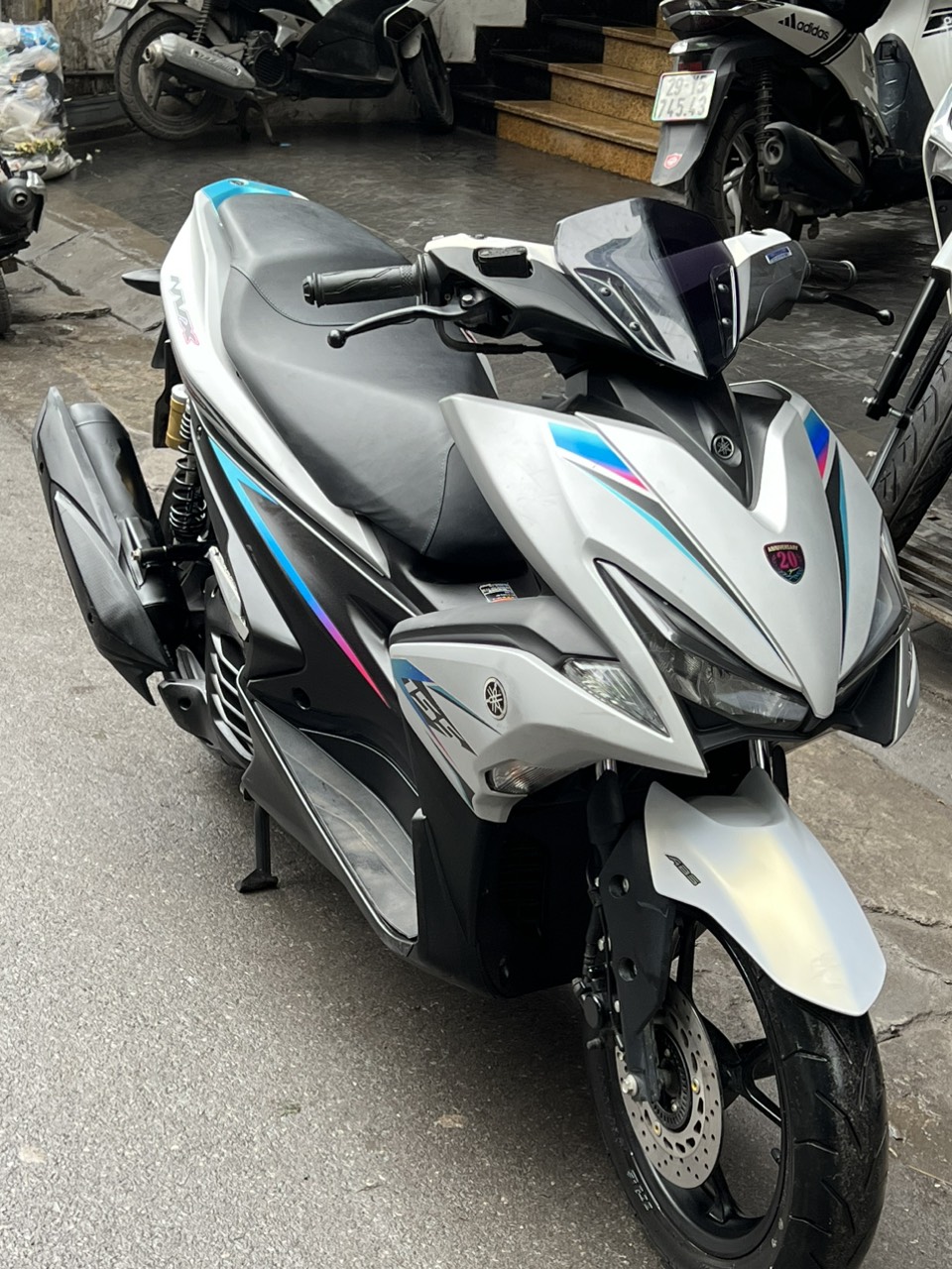 Yamaha NVX, khóa smartkey, màu trắng bạc xanh, dung tích 155cc. Xe vẫn dán nilon nên còn rất đẹp, máy chất chạy êm, đi rất ít. Xe NVX có thiết kế thể thao, phong cách. Đầu xe nổi bật với cụm đèn pha '2 mắt' lấy cảm hứng từ mẫu môtô YZF-R3, chiếu sáng công nghệ LED. Một chi tiết khá độc đáo trên chiếc xe là 2 đèn bên cạnh đèn pha không phải đèn xi-nhan, mà là đèn định vị. Trong khi đèn xi-nhan được đặt ở phần yếm như nhiều dòng môtô hiện nay.