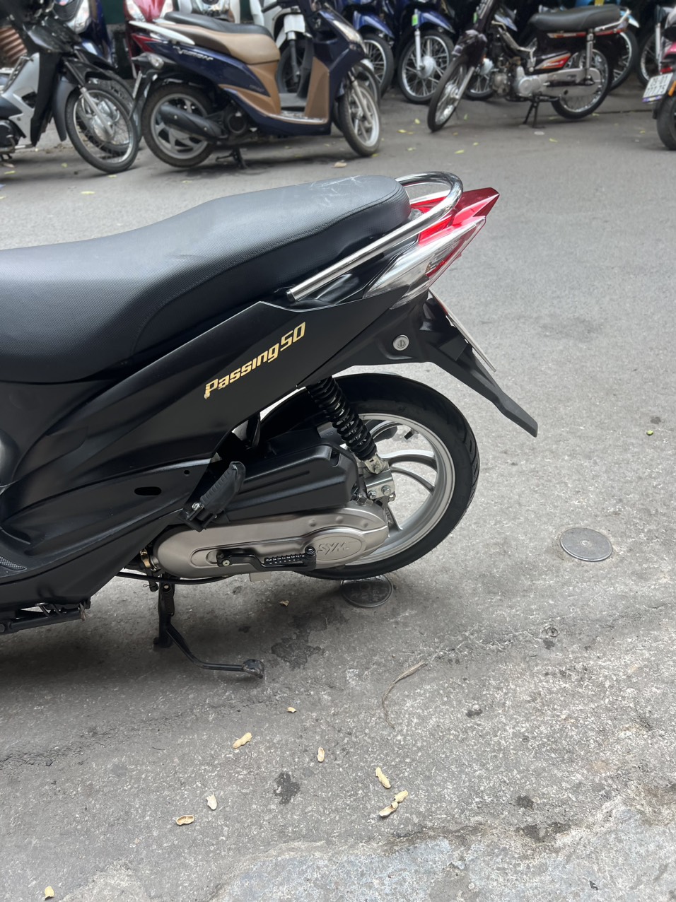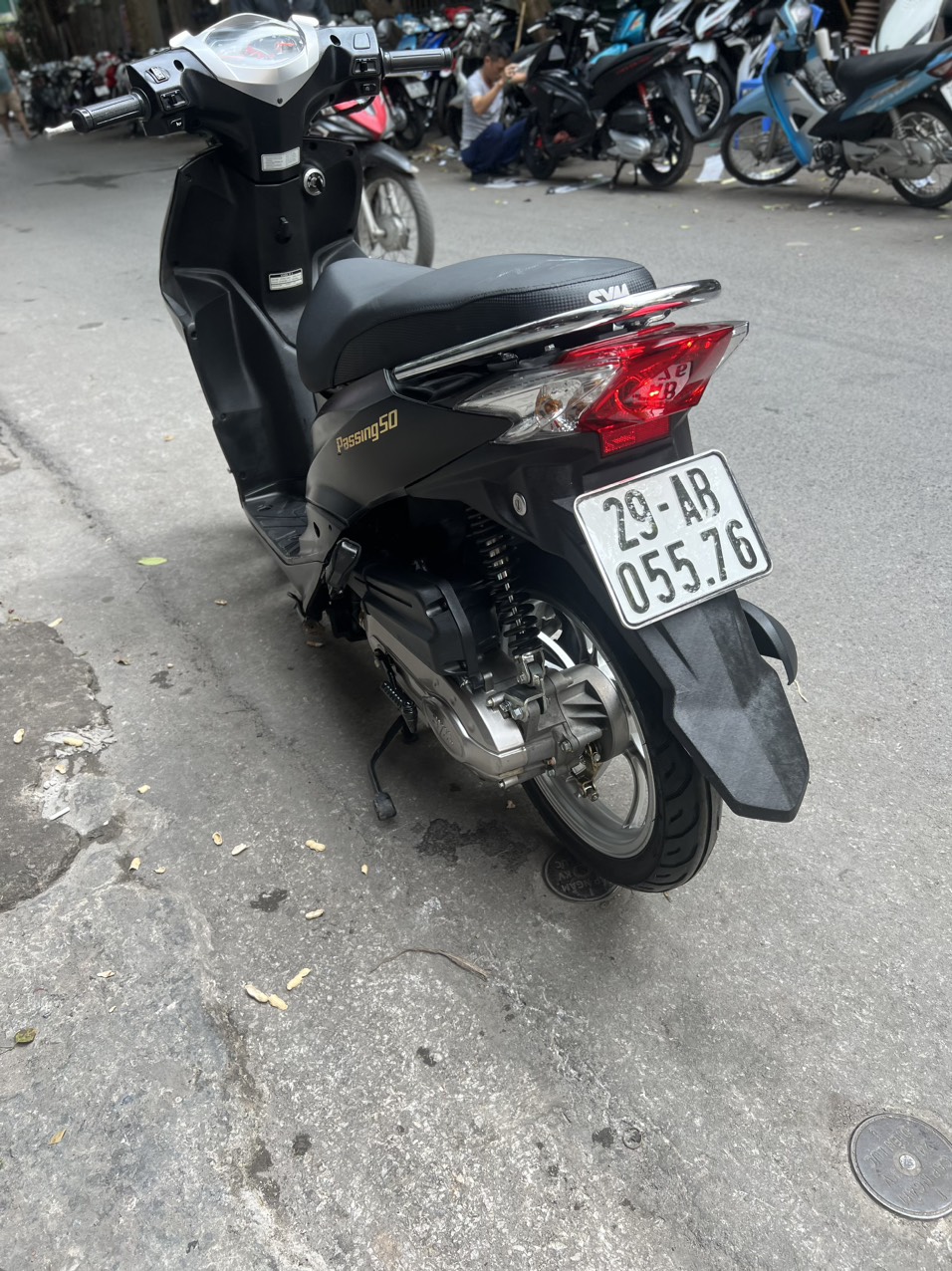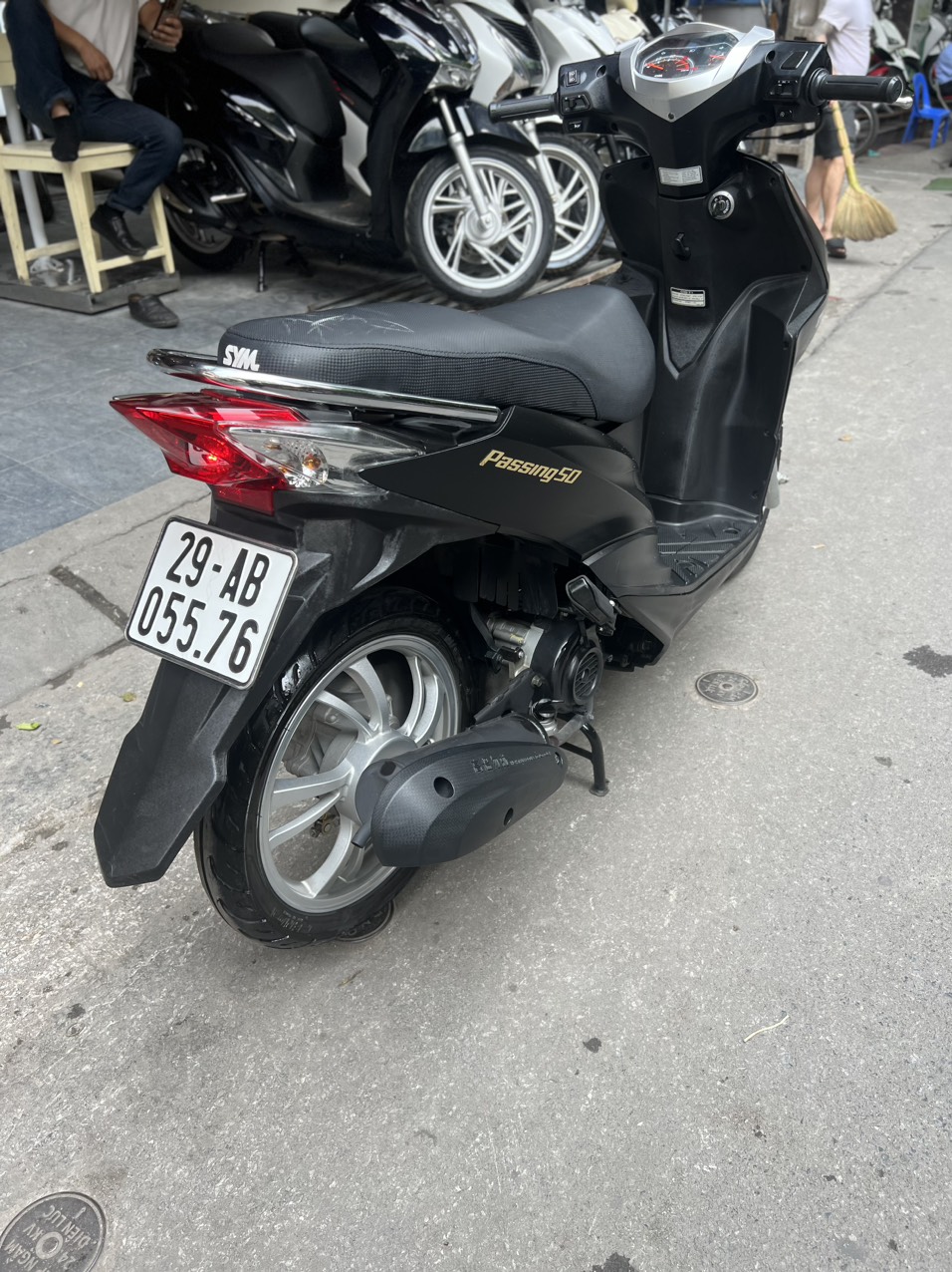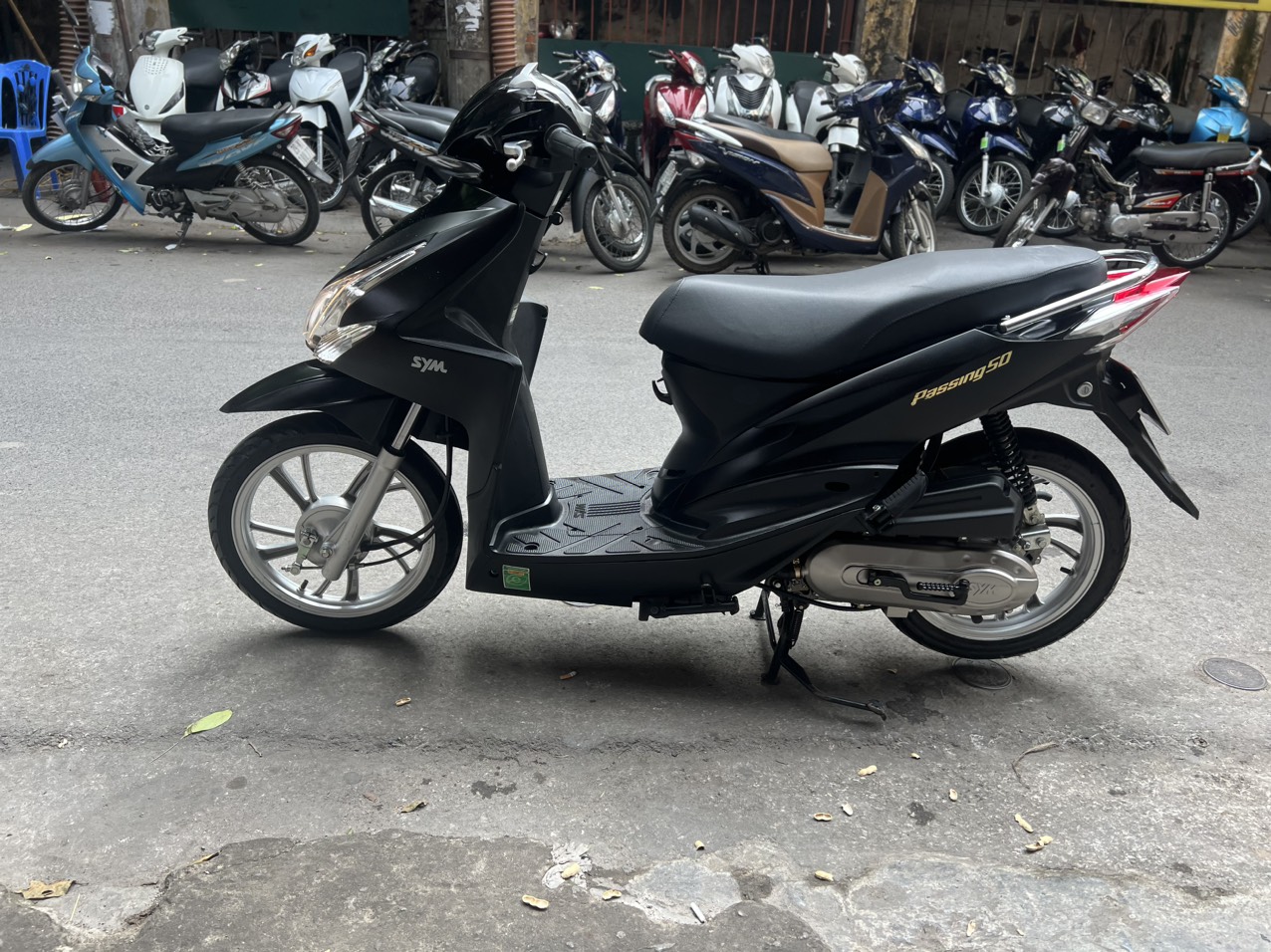 SYM Passing, màu đen, dung tích 50cc. Elite 50 là dòng xe ga 50 phân khối bán đang chạy tại Châu Âu, kiểu dáng hoài cổ, độc đáo, gọn nhẹ mang đậm phong cách Châu Âu và rất nữ tính…Thêm lựa chọn mới cho giới học sinh, sinh viên và những người không cần bằng lái.