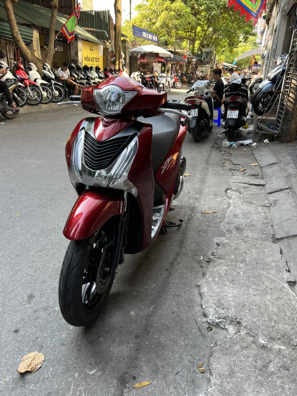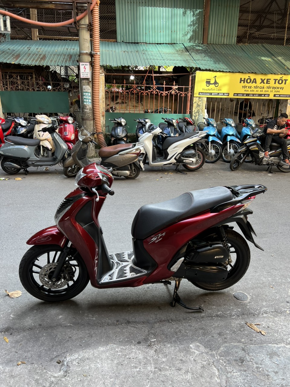 Honda SH, màu đỏ đen, dung tích 125cc, xe có khóa remote thông minh, an toàn, hiện đại, xe đẹp xuất sắc, đi cực ít. SH là dòng xe tay ga cao cấp của hãng xe máy nổi tiếng Honda. Với động cơ cực khóe, tiết kiệm nhiên liệu, thêm vào đó là thiết kế tạo cho người lái dáng ngồi sang trong SH đã nhanh chóng giành được sự “ưu ái” của những khách hàng có kinh tế ổn định, khá giả.