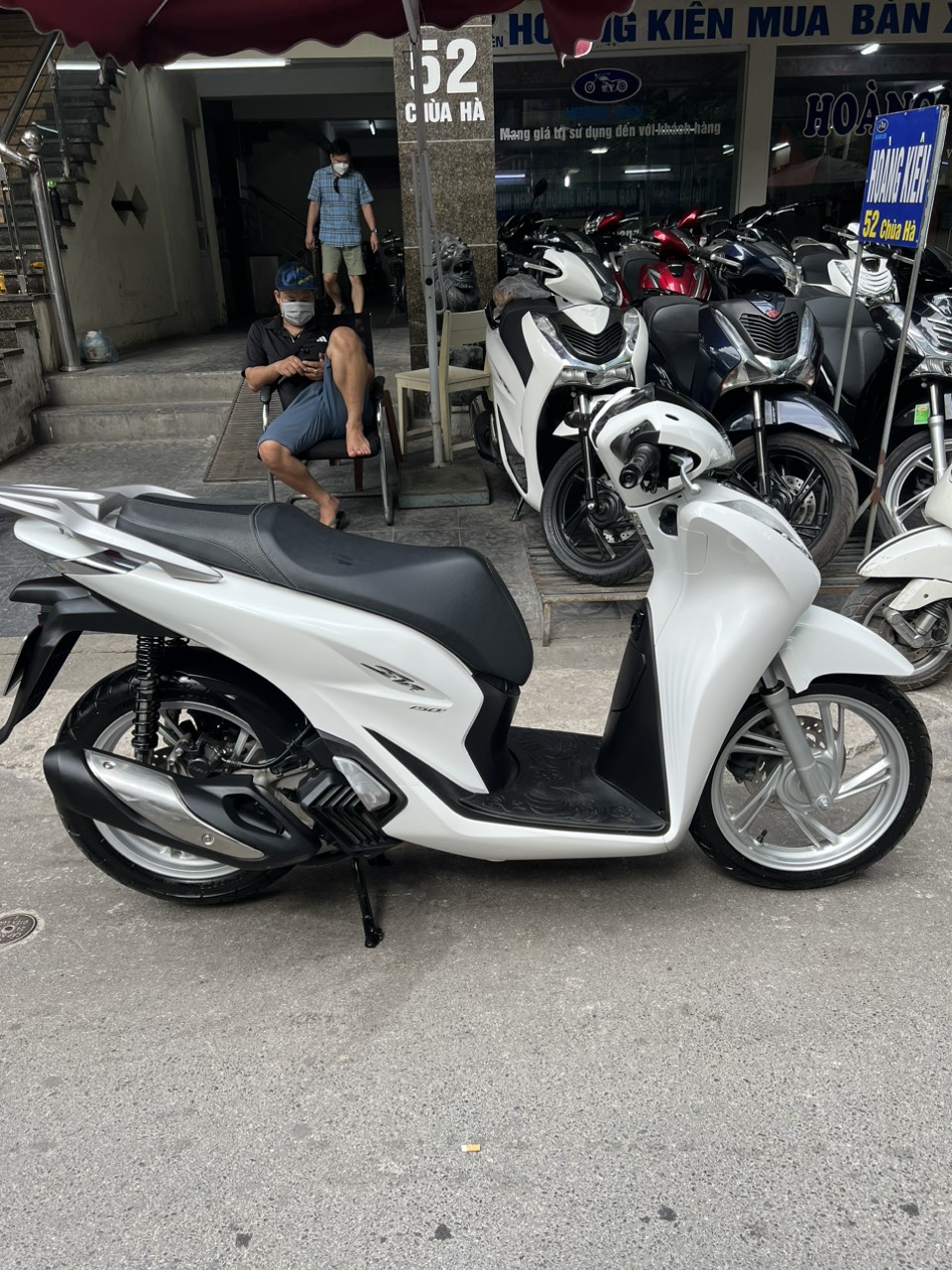Honda SH CBS, màu trắng đen, dung tích 150cc, xe có khóa smartkey thông minh, an toàn, hiện đại, xe đẹp xuất sắc, đi cực ít. SH là dòng xe tay ga cao cấp của hãng xe máy nổi tiếng Honda. Với động cơ cực khóe, tiết kiệm nhiên liệu, thêm vào đó là thiết kế tạo cho người lái dáng ngồi sang trong SH đã nhanh chóng giành được sự “ưu ái” của những khách hàng có kinh tế ổn định, khá giả.