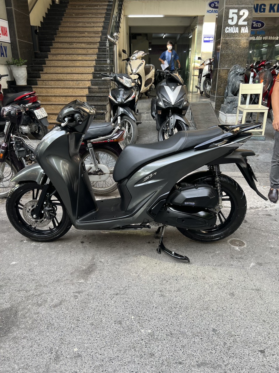 Honda SH CBS, màu xam đen, dung tích 125cc, xe có khóa smartkey thông minh, an toàn, hiện đại, xe đẹp xuất sắc, đi cực ít. SH là dòng xe tay ga cao cấp của hãng xe máy nổi tiếng Honda. Với động cơ cực khóe, tiết kiệm nhiên liệu, thêm vào đó là thiết kế tạo cho người lái dáng ngồi sang trong SH đã nhanh chóng giành được sự “ưu ái” của những khách hàng có kinh tế ổn định, khá giả.