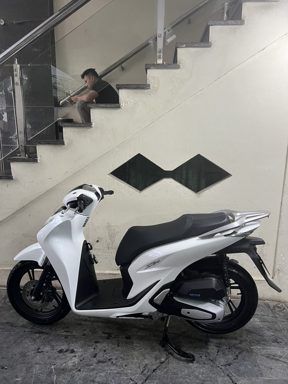 Honda SH CBS, màu trắng đen, dung tích 125cc, xe có khóa smartkey thông minh, an toàn, hiện đại, xe đẹp xuất sắc, đi cực ít. SH là dòng xe tay ga cao cấp của hãng xe máy nổi tiếng Honda. Với động cơ cực khóe, tiết kiệm nhiên liệu, thêm vào đó là thiết kế tạo cho người lái dáng ngồi sang trong SH đã nhanh chóng giành được sự “ưu ái” của những khách hàng có kinh tế ổn định, khá giả.