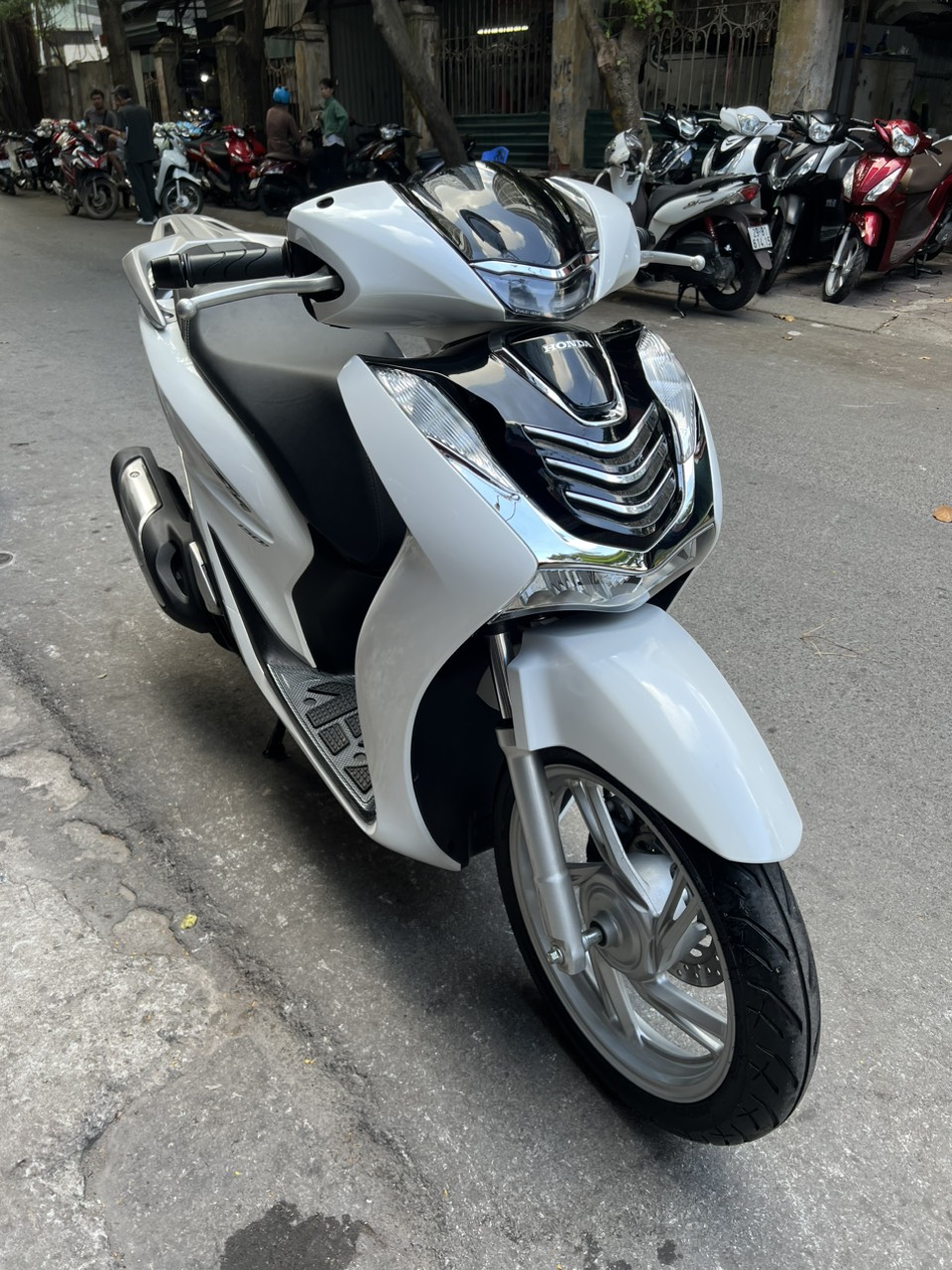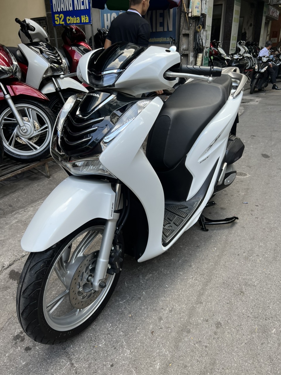 Honda SH CBS, màu trắng đen, dung tích 125cc, xe có khóa smartkey thông minh, an toàn, hiện đại, xe đẹp xuất sắc, đi cực ít. SH là dòng xe tay ga cao cấp của hãng xe máy nổi tiếng Honda. Với động cơ cực khóe, tiết kiệm nhiên liệu, thêm vào đó là thiết kế tạo cho người lái dáng ngồi sang trong SH đã nhanh chóng giành được sự “ưu ái” của những khách hàng có kinh tế ổn định, khá giả.
