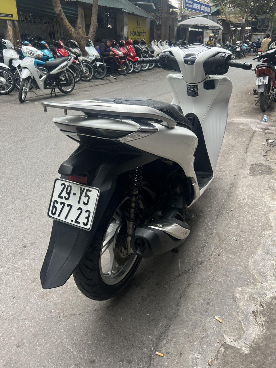 Honda SH CBS, màu trắng đen, dung tích 125cc, xe có khóa smartkey thông minh, an toàn, hiện đại, xe đẹp xuất sắc, đi cực ít. SH là dòng xe tay ga cao cấp của hãng xe máy nổi tiếng Honda. Với động cơ cực khóe, tiết kiệm nhiên liệu, thêm vào đó là thiết kế tạo cho người lái dáng ngồi sang trong SH đã nhanh chóng giành được sự “ưu ái” của những khách hàng có kinh tế ổn định, khá giả.
