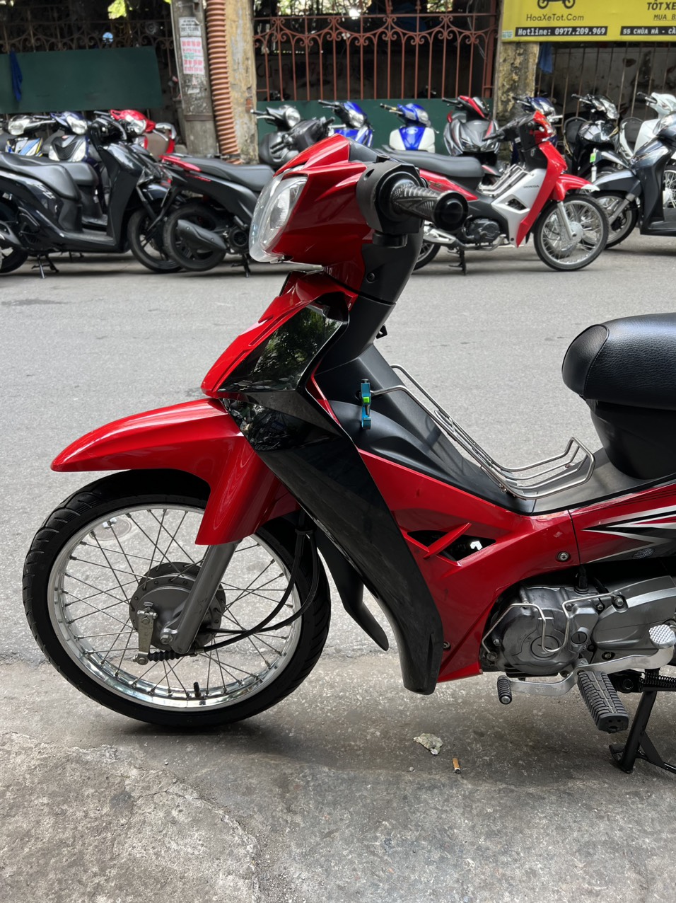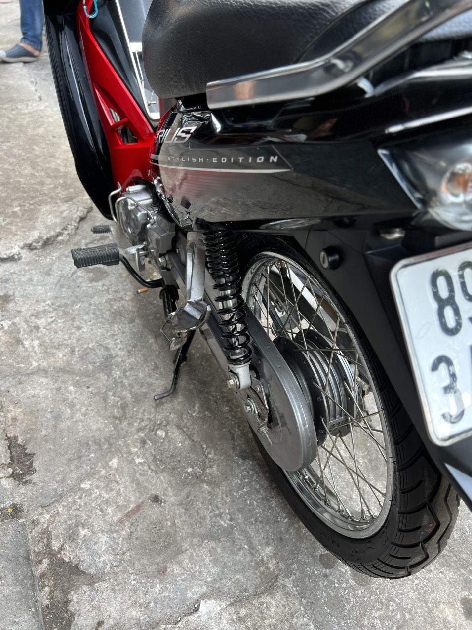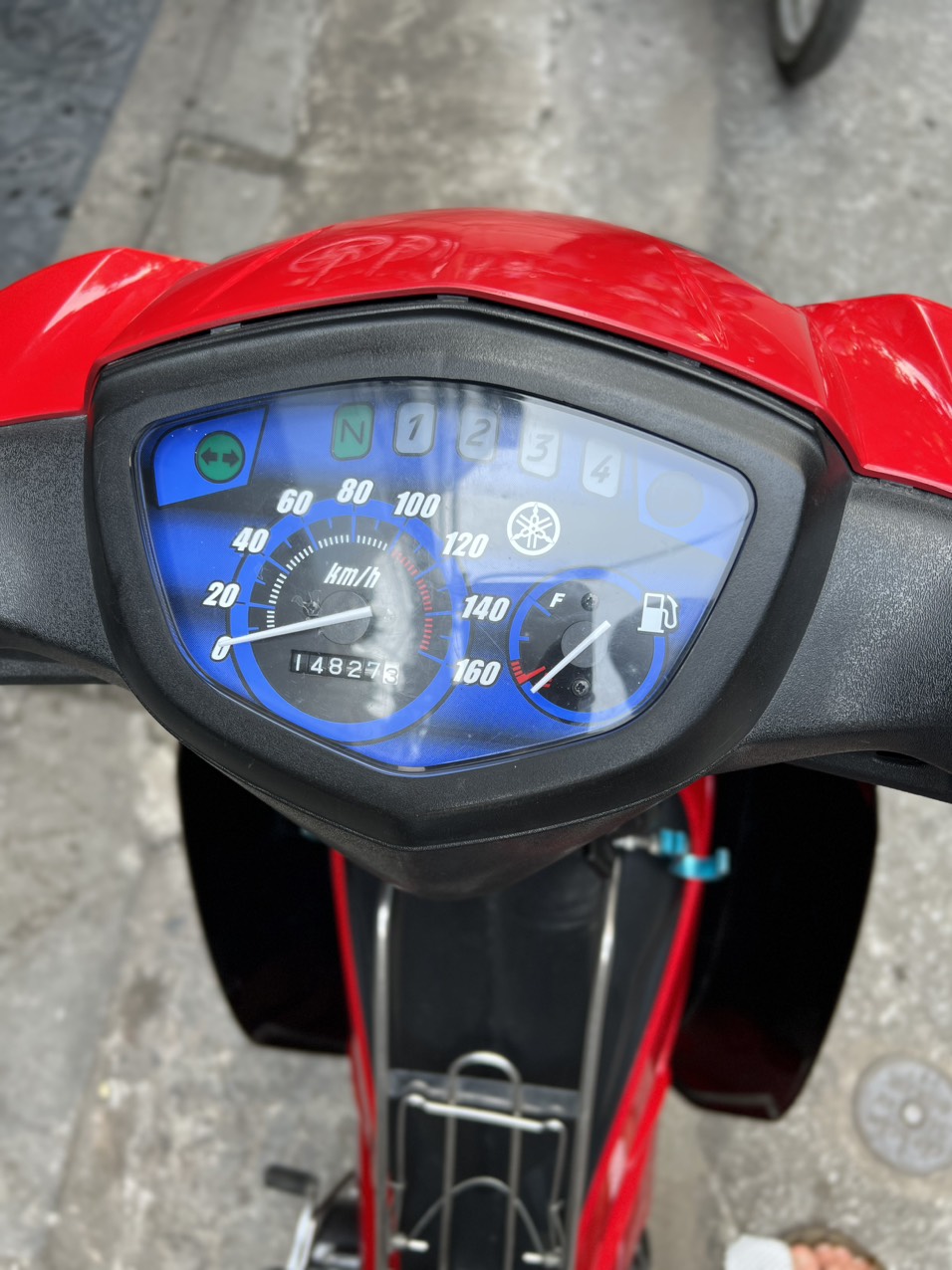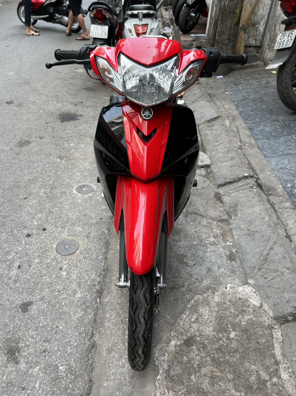 Yamaha Sirius, màu đỏ đen, dung tích 110cc. Xe có hình thức đẹp, động cơ khởi động êm ái, sang số nhẹ nhàng, hoạt động mạnh mẽ, di chuyển ổn định ở tốc độ cao. Ngoài ra xe còn được yêu thích bởi tính bền bỉ, tiết kiệm nhiên liệu và rất ít khi hỏng vặt. Xe tỏ ra có ưu điểm vượt trội khi đi trong các ngõ nhỏ, phố nhỏ, đường đô thị chật hẹp, nhiều lối rẽ. Xe có thiết kế phun xăng điện tử, tiết kiệm nhiên liệu, xăng chạy tầm 2L/100km.