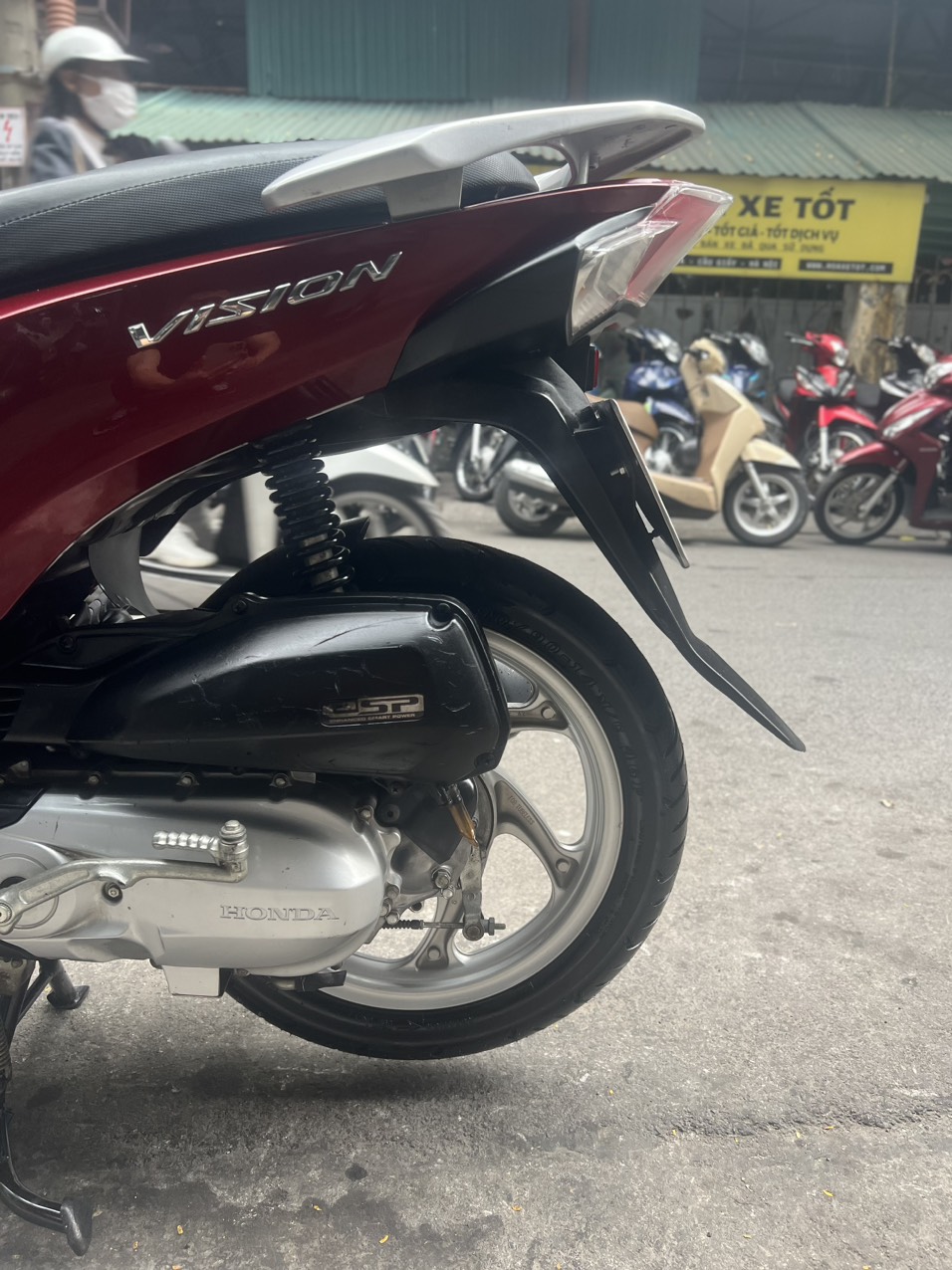 Honda Vision, màu đỏ đen, dung tích 110cc, xe đẹp lung linh, không một lỗi nhỏ. Đây là dòng xe ga có thiết kế nhỏ nhắn, nhẹ nhàng. Kiểu dáng trẻ trung, thanh lịch. Xe phù hợp với các bạn nữ có vóc dáng mi nhon, chiều cao vừa phải. Ưu điểm nổi bật của dòng xe này là máy khoẻ, chạy êm, di chuyển ổn định ở tốc độ cao.
