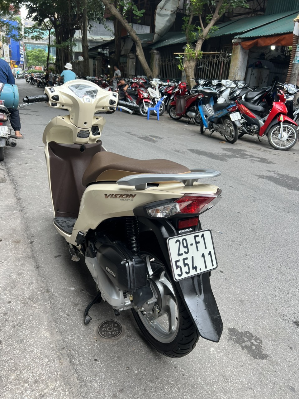 Honda Vision, màu vàng nâu, dung tích 110cc, xe đẹp lung linh, không một lỗi nhỏ. Đây là dòng xe ga có thiết kế nhỏ nhắn, nhẹ nhàng. Kiểu dáng trẻ trung, thanh lịch. Xe phù hợp với các bạn nữ có vóc dáng mi nhon, chiều cao vừa phải. Ưu điểm nổi bật của dòng xe này là máy khoẻ, chạy êm, di chuyển ổn định ở tốc độ cao.