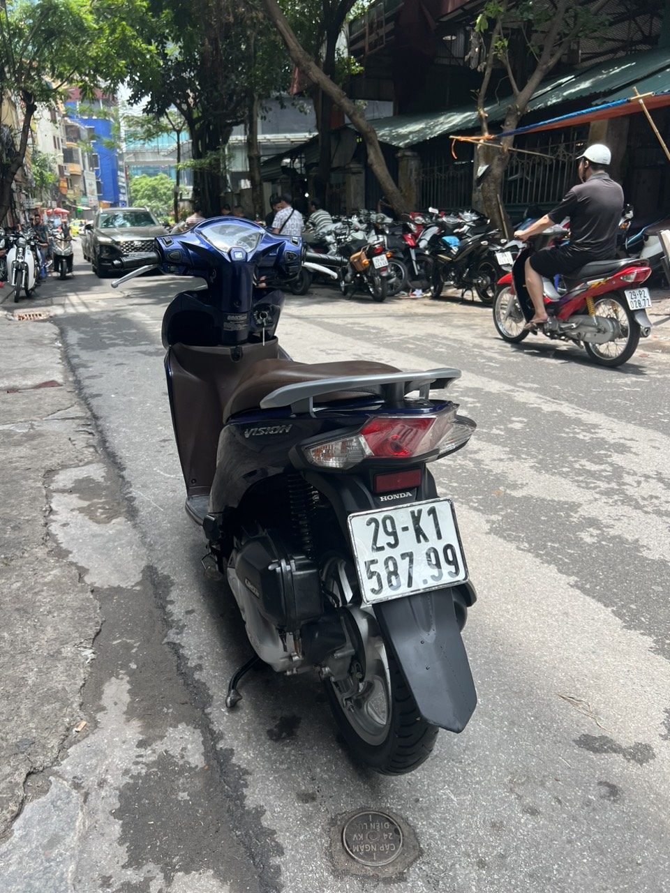 Honda Vision, màu xanh đen, dung tích 110cc, xe đẹp lung linh, không một lỗi nhỏ. Đây là dòng xe ga có thiết kế nhỏ nhắn, nhẹ nhàng. Kiểu dáng trẻ trung, thanh lịch. Xe phù hợp với các bạn nữ có vóc dáng mi nhon, chiều cao vừa phải. Ưu điểm nổi bật của dòng xe này là máy khoẻ, chạy êm, di chuyển ổn định ở tốc độ cao.
