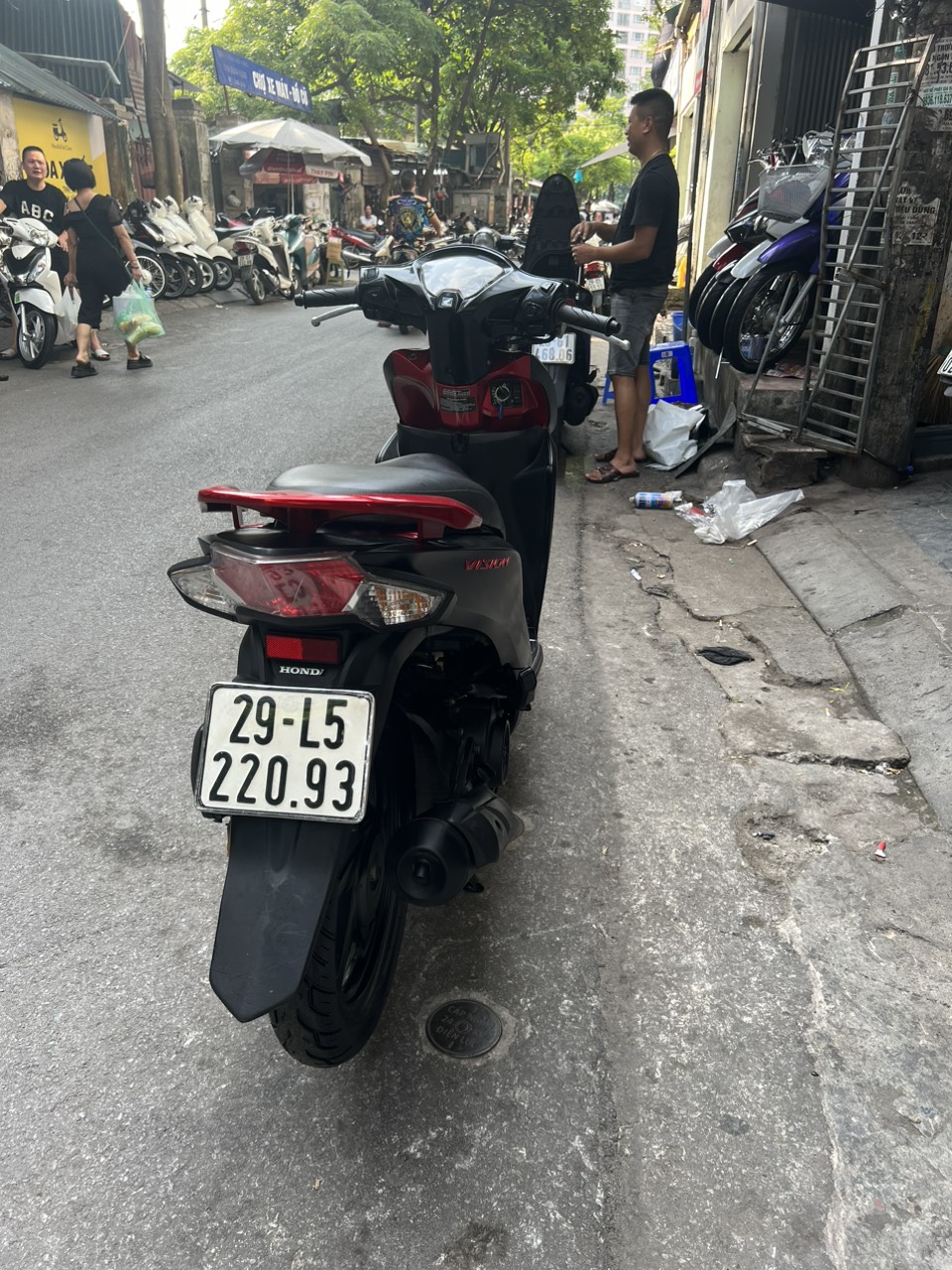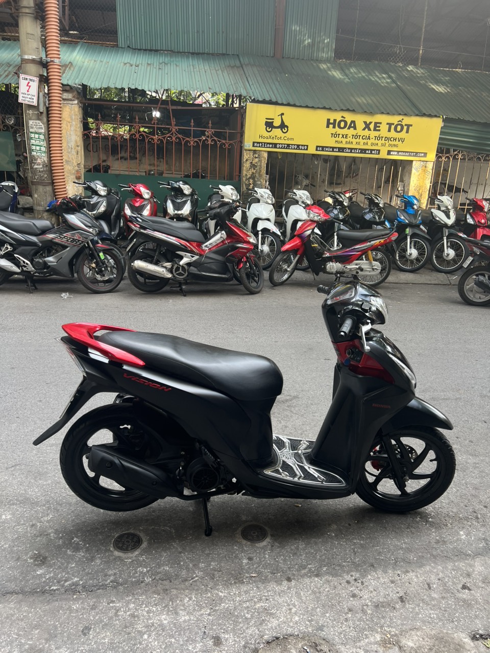 Honda Vision, màu đen đỏ, dung tích 110cc, xe đẹp lung linh, không một lỗi nhỏ. Đây là dòng xe ga có thiết kế nhỏ nhắn, nhẹ nhàng. Kiểu dáng trẻ trung, thanh lịch. Xe phù hợp với các bạn nữ có vóc dáng mi nhon, chiều cao vừa phải. Ưu điểm nổi bật của dòng xe này là máy khoẻ, chạy êm, di chuyển ổn định ở tốc độ cao.