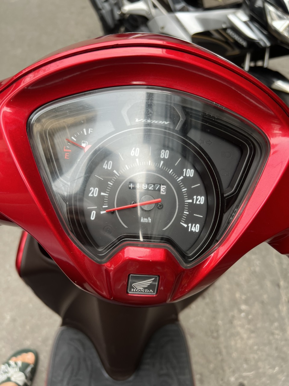 Honda Vision, màu đỏ đen, dung tích 110cc, xe đẹp lung linh, không một lỗi nhỏ. Đây là dòng xe ga có thiết kế nhỏ nhắn, nhẹ nhàng. Kiểu dáng trẻ trung, thanh lịch. Xe phù hợp với các bạn nữ có vóc dáng mi nhon, chiều cao vừa phải. Ưu điểm nổi bật của dòng xe này là máy khoẻ, chạy êm, di chuyển ổn định ở tốc độ cao.