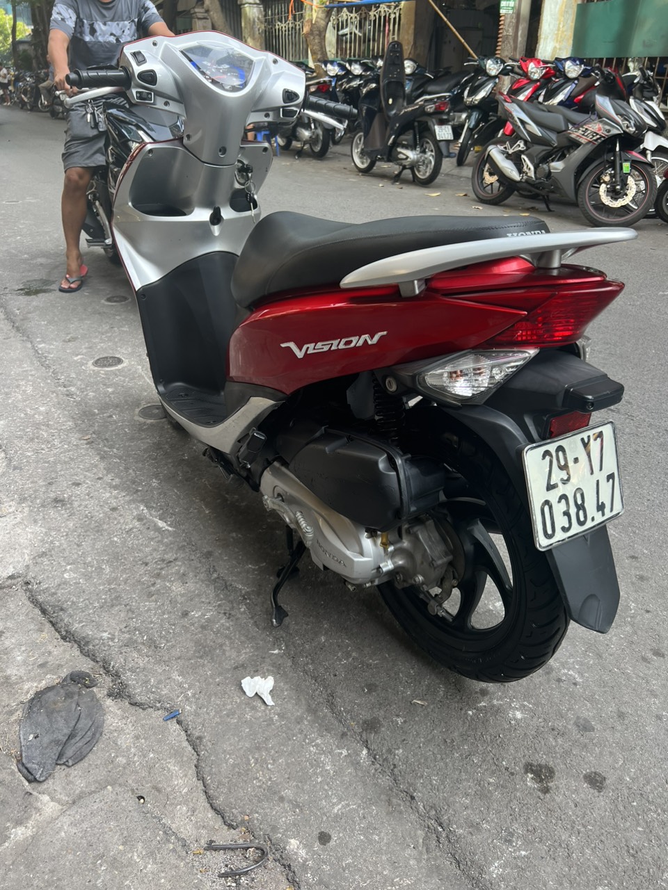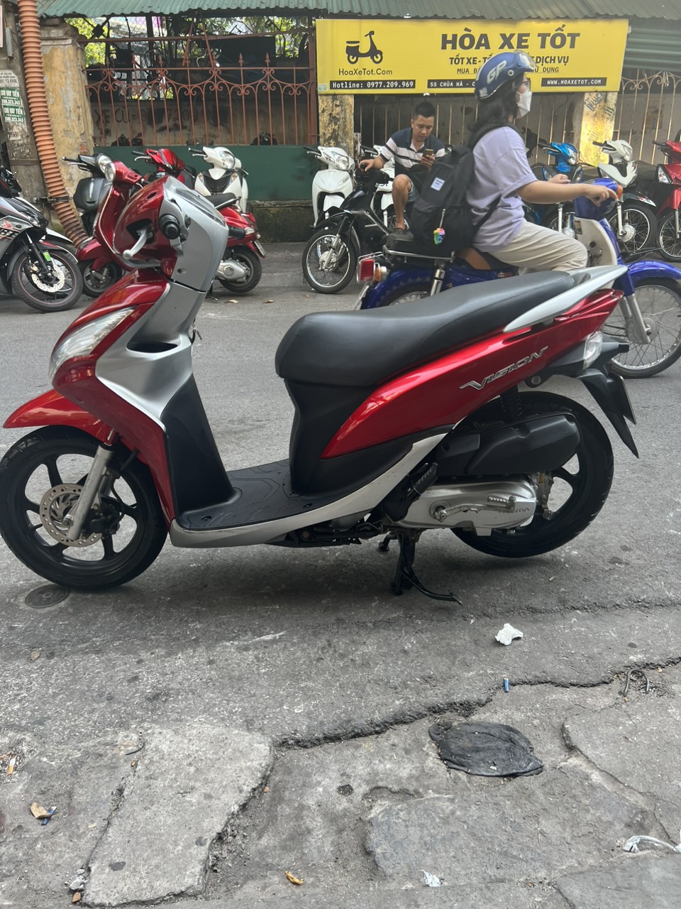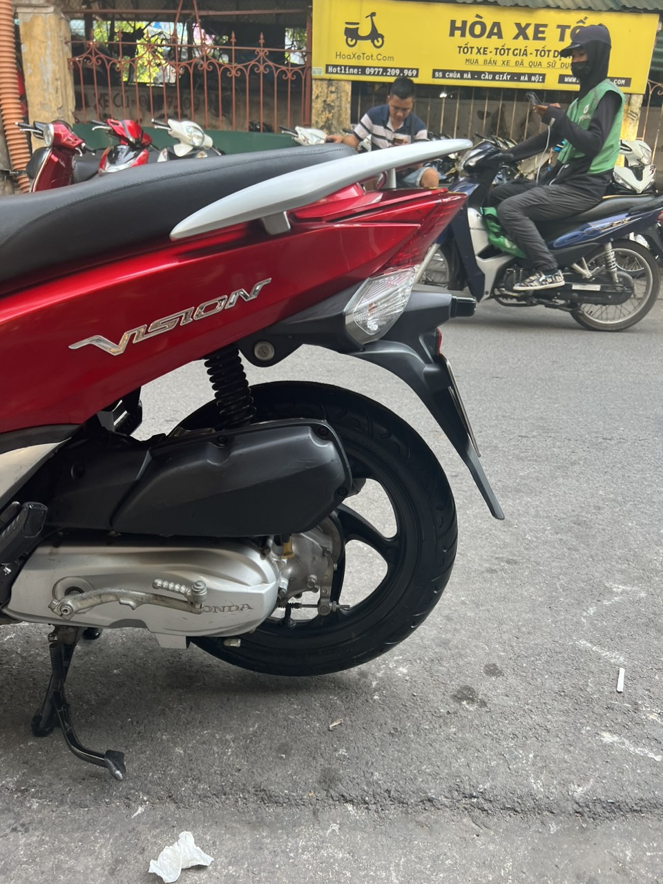 Honda Vision, màu đỏ đen, dung tích 110cc, xe đẹp lung linh, không một lỗi nhỏ. Đây là dòng xe ga có thiết kế nhỏ nhắn, nhẹ nhàng. Kiểu dáng trẻ trung, thanh lịch. Xe phù hợp với các bạn nữ có vóc dáng mi nhon, chiều cao vừa phải. Ưu điểm nổi bật của dòng xe này là máy khoẻ, chạy êm, di chuyển ổn định ở tốc độ cao.