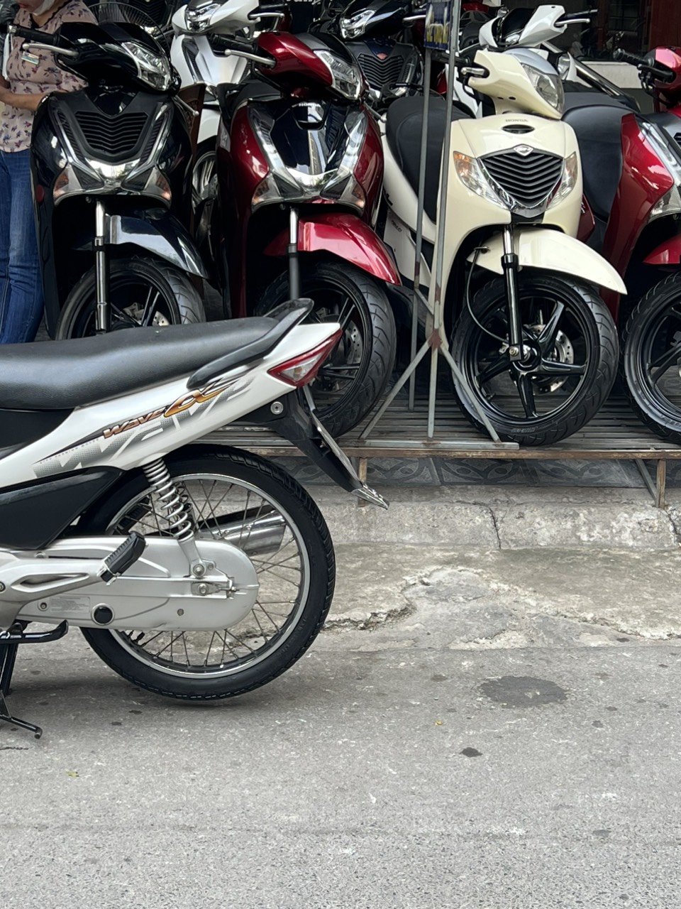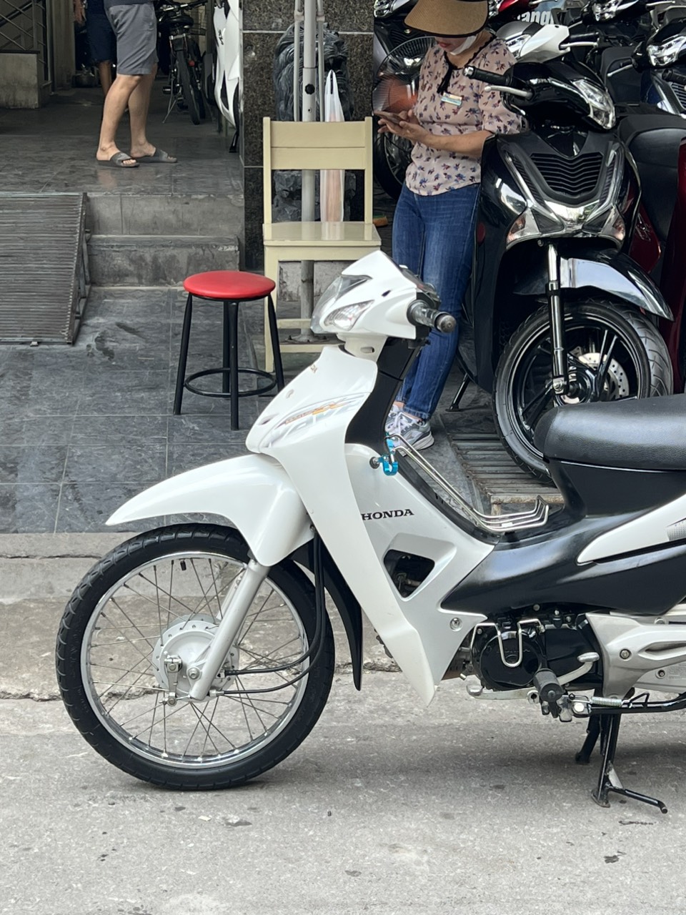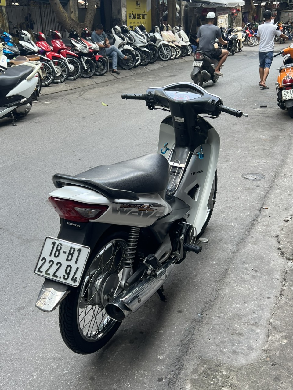 Honda Wave A, màu trắng đen bạc, dung tích 100cc. Xe có thiết kế nhỏ gọn, chắc chắn, đi đầm, máy êm, chạy bốc, di chuyển ổn định ở tốc độ cao. Ngoài ra xe còn được yêu thích bởi tính bền bỉ, tiết kiệm nhiên liệu và rất ít khi hỏng vặt. Xe tỏ ra có ưu điểm vượt trội khi đi trong các ngõ nhỏ, phố nhỏ, đường đô thị chật hẹp, nhiều lối rẽ.