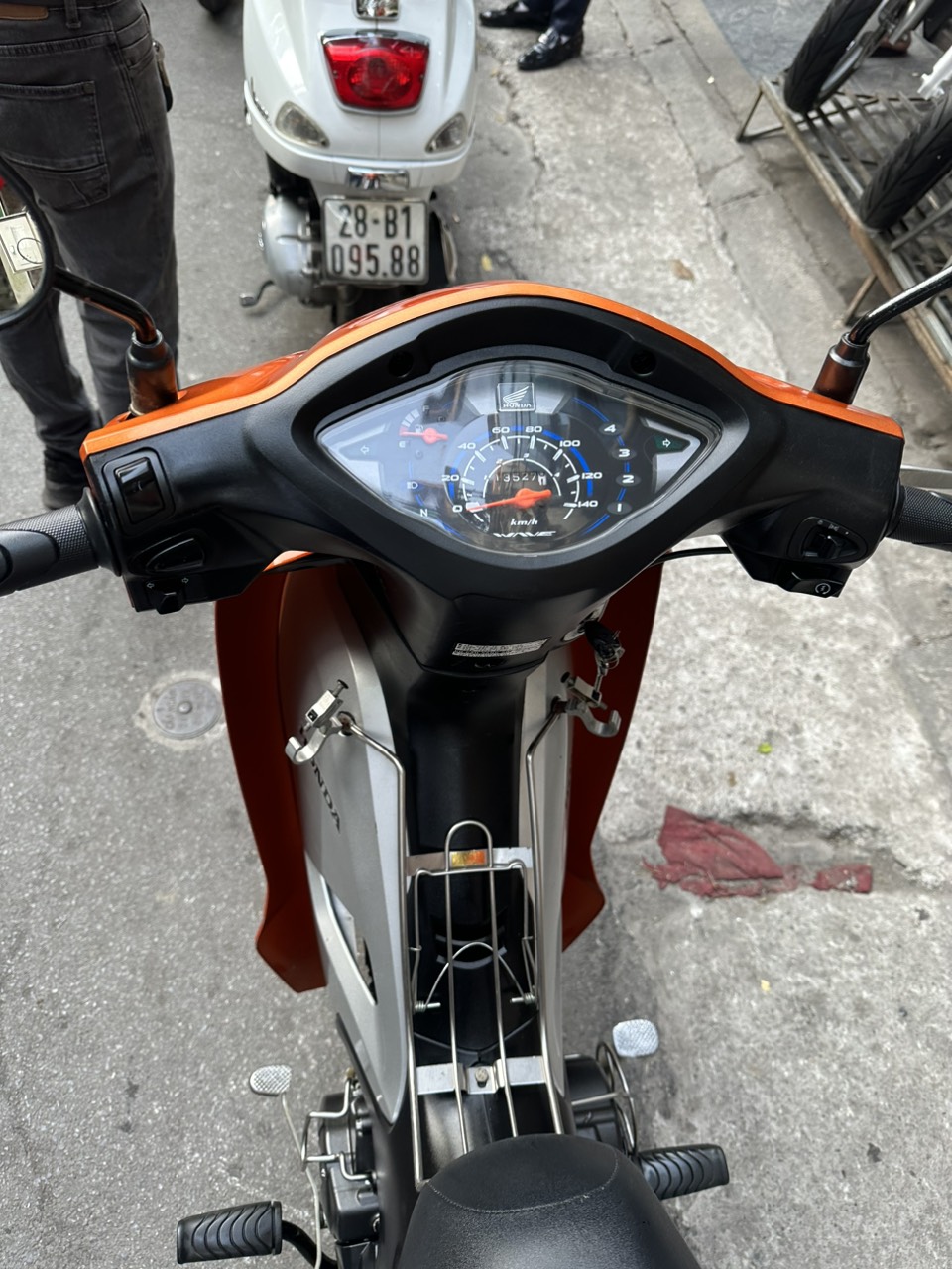 Honda Wave A, màu vàng đen bạc, dung tích 110cc. Xe có thiết kế nhỏ gọn, chắc chắn, đi đầm, máy êm, chạy bốc, di chuyển ổn định ở tốc độ cao. Ngoài ra xe còn được yêu thích bởi tính bền bỉ, tiết kiệm nhiên liệu và rất ít khi hỏng vặt. Xe tỏ ra có ưu điểm vượt trội khi đi trong các ngõ nhỏ, phố nhỏ, đường đô thị chật hẹp, nhiều lối rẽ.
