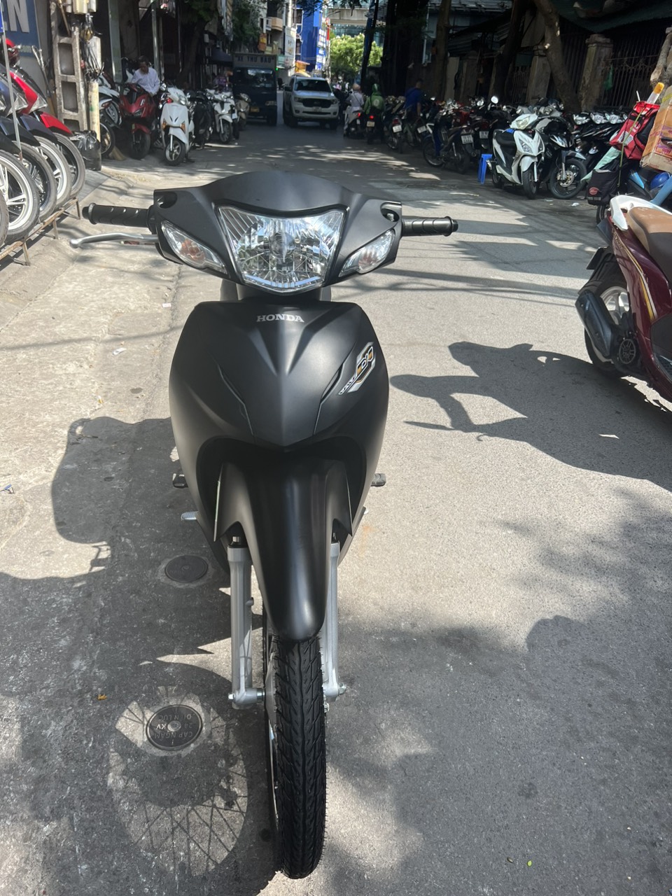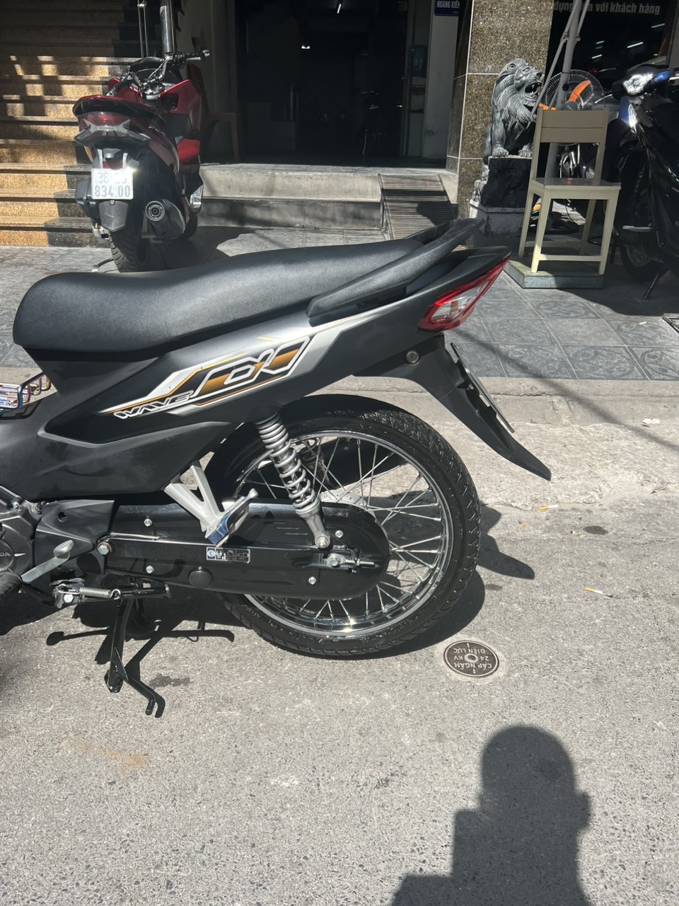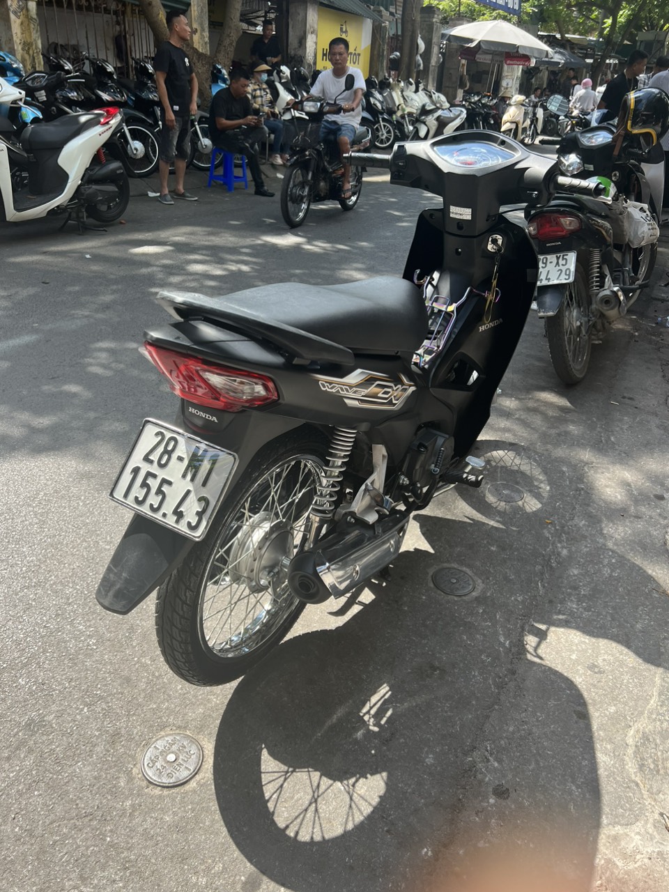 Honda Wave A, màu đen bạc, dung tích 110cc. Xe có thiết kế nhỏ gọn, chắc chắn, đi đầm, máy êm, chạy bốc, di chuyển ổn định ở tốc độ cao. Ngoài ra xe còn được yêu thích bởi tính bền bỉ, tiết kiệm nhiên liệu và rất ít khi hỏng vặt. Xe tỏ ra có ưu điểm vượt trội khi đi trong các ngõ nhỏ, phố nhỏ, đường đô thị chật hẹp, nhiều lối rẽ.