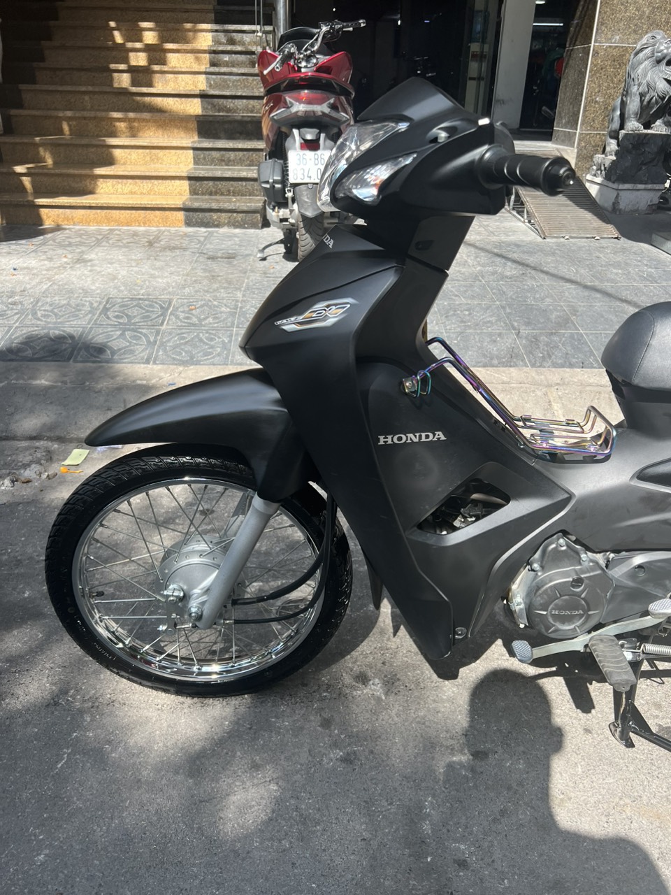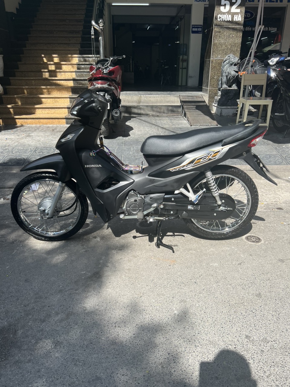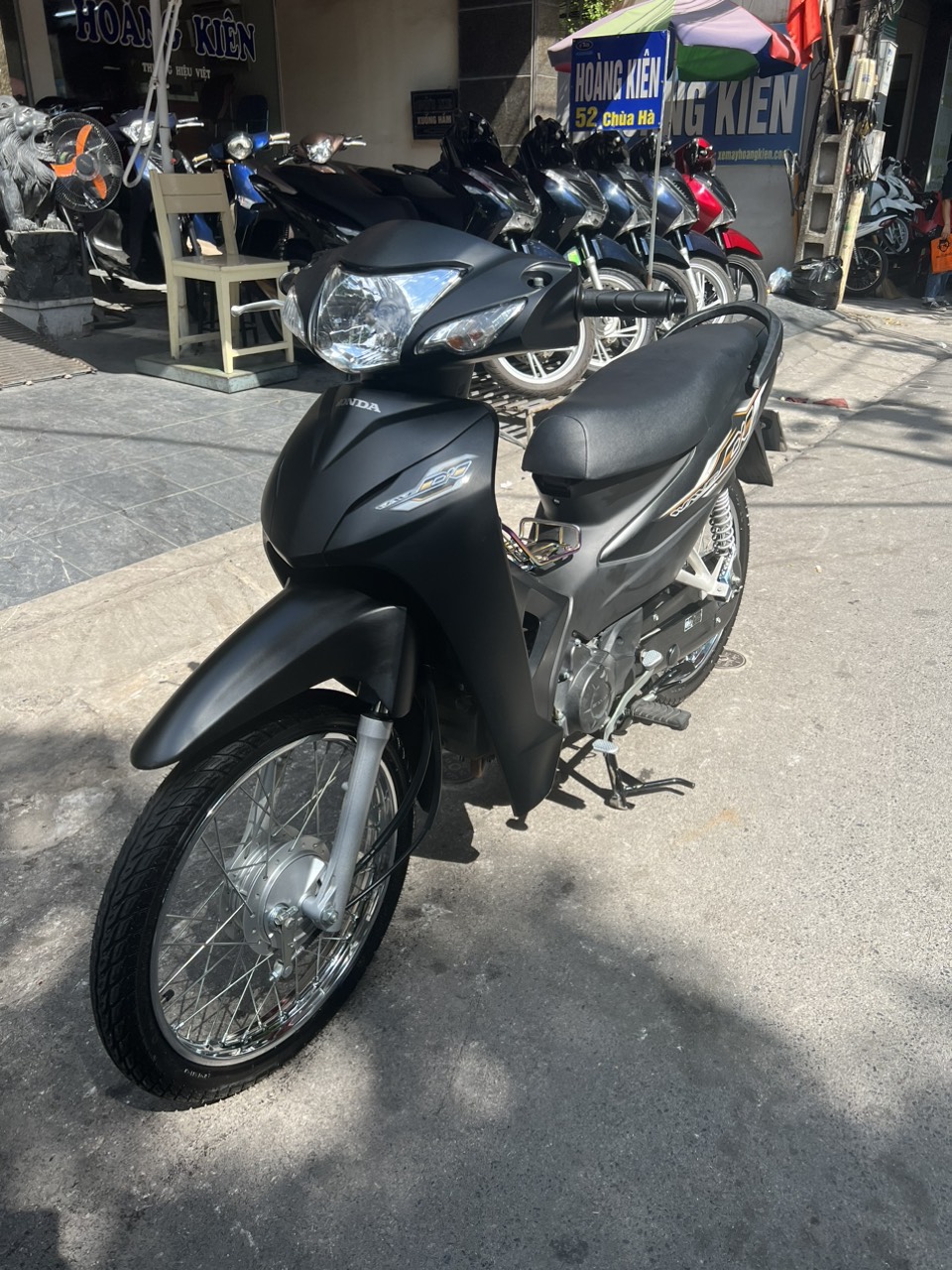 Honda Wave A, màu đen bạc, dung tích 110cc. Xe có thiết kế nhỏ gọn, chắc chắn, đi đầm, máy êm, chạy bốc, di chuyển ổn định ở tốc độ cao. Ngoài ra xe còn được yêu thích bởi tính bền bỉ, tiết kiệm nhiên liệu và rất ít khi hỏng vặt. Xe tỏ ra có ưu điểm vượt trội khi đi trong các ngõ nhỏ, phố nhỏ, đường đô thị chật hẹp, nhiều lối rẽ.