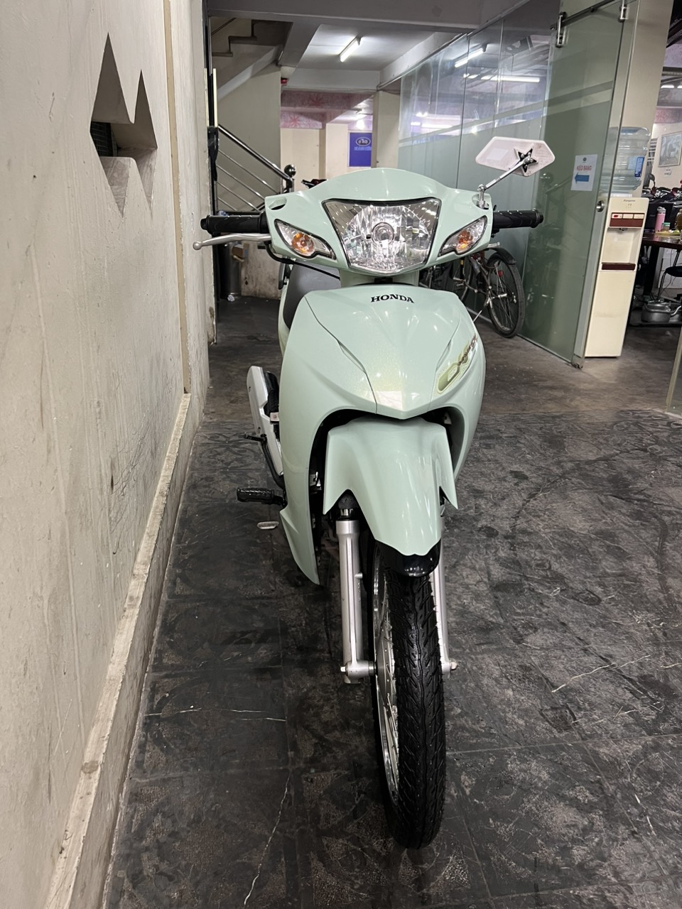 Honda Wave A, màu xanh đen bạc, dung tích 110cc. Xe có thiết kế nhỏ gọn, chắc chắn, đi đầm, máy êm, chạy bốc, di chuyển ổn định ở tốc độ cao. Ngoài ra xe còn được yêu thích bởi tính bền bỉ, tiết kiệm nhiên liệu và rất ít khi hỏng vặt. Xe tỏ ra có ưu điểm vượt trội khi đi trong các ngõ nhỏ, phố nhỏ, đường đô thị chật hẹp, nhiều lối rẽ.
