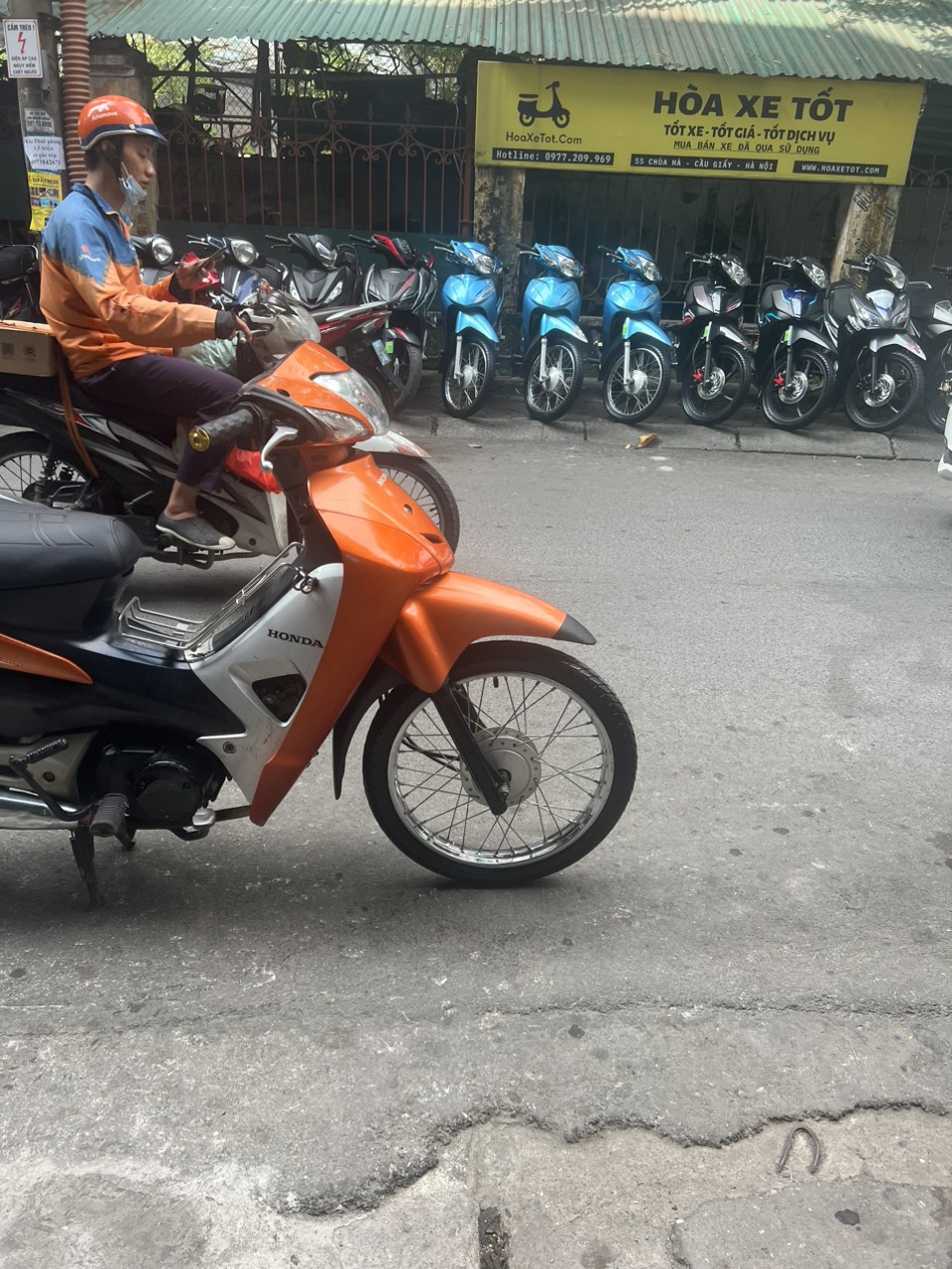 Honda Wave A, màu trắng đen bạc, dung tích 100cc. Xe có thiết kế nhỏ gọn, chắc chắn, đi đầm, máy êm, chạy bốc, di chuyển ổn định ở tốc độ cao. Ngoài ra xe còn được yêu thích bởi tính bền bỉ, tiết kiệm nhiên liệu và rất ít khi hỏng vặt. Xe tỏ ra có ưu điểm vượt trội khi đi trong các ngõ nhỏ, phố nhỏ, đường đô thị chật hẹp, nhiều lối rẽ.