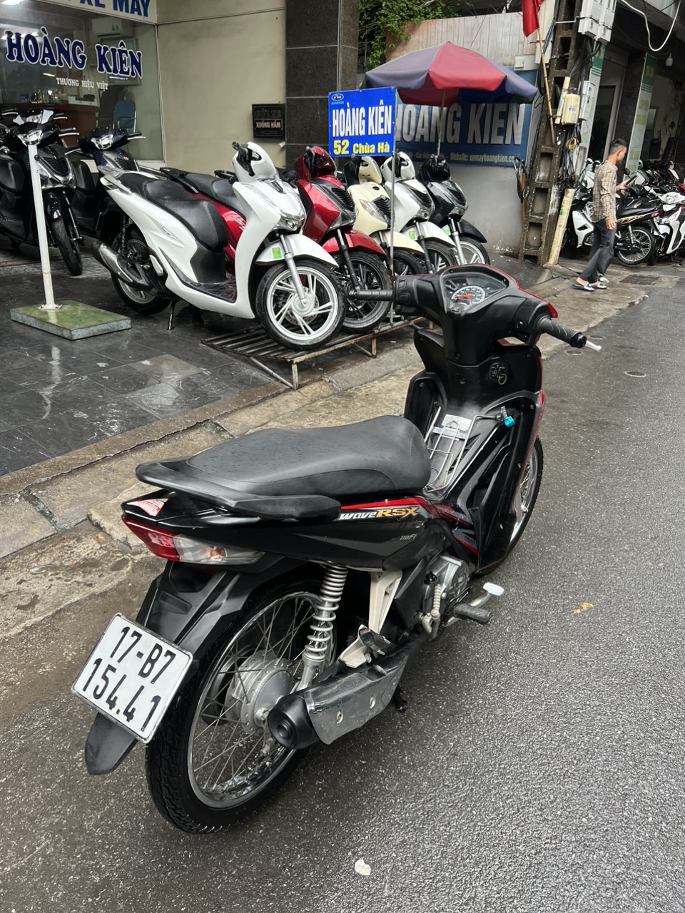 Honda Wave RSX FI, màu đỏ đen, dung tích 110cc. Xe có thiết kế nhỏ gọn, chắc chắn, đi đầm, máy êm, chạy bốc, di chuyển ổn định ở tốc độ cao. Ngoài ra xe còn được yêu thích bởi tính bền bỉ, tiết kiệm nhiên liệu và rất ít khi hỏng vặt. Xe tỏ ra có ưu điểm vượt trội khi đi trong các ngõ nhỏ, phố nhỏ, đường đô thị chật hẹp, nhiều lối rẽ.