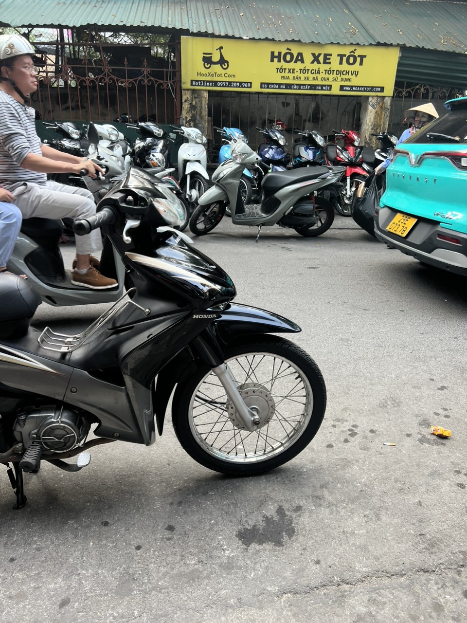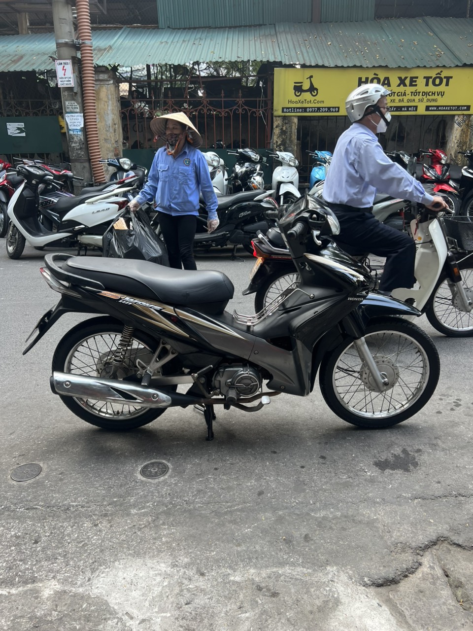 Honda Wave S, màu đen bạc, dung tích 110cc. Xe có thiết kế nhỏ gọn, chắc chắn, đi đầm, máy êm, chạy bốc, di chuyển ổn định ở tốc độ cao. Ngoài ra xe còn được yêu thích bởi tính bền bỉ, tiết kiệm nhiên liệu và rất ít khi hỏng vặt. Xe tỏ ra có ưu điểm vượt trội khi đi trong các ngõ nhỏ, phố nhỏ, đường đô thị chật hẹp, nhiều lối rẽ.
